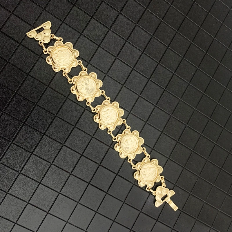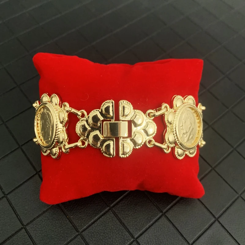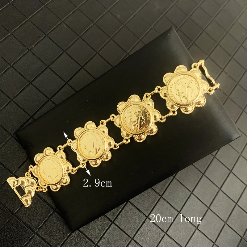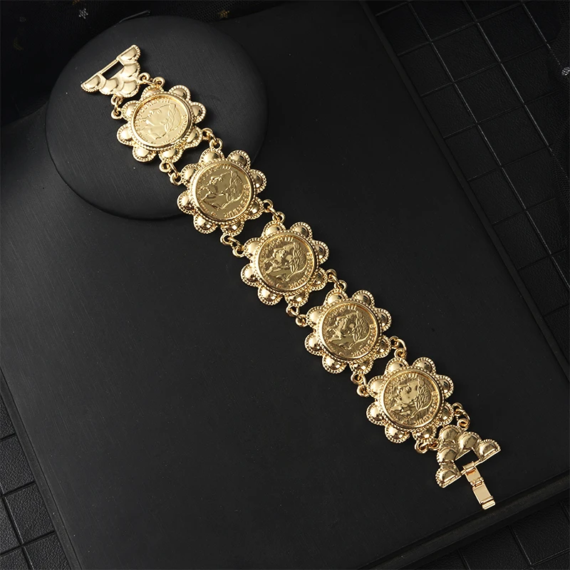 Новое поступление, браслет с французскими монетами, позолоченный юбилейный браслет с фигуркой Наполеона, Женский Браслет-манжета с цветами