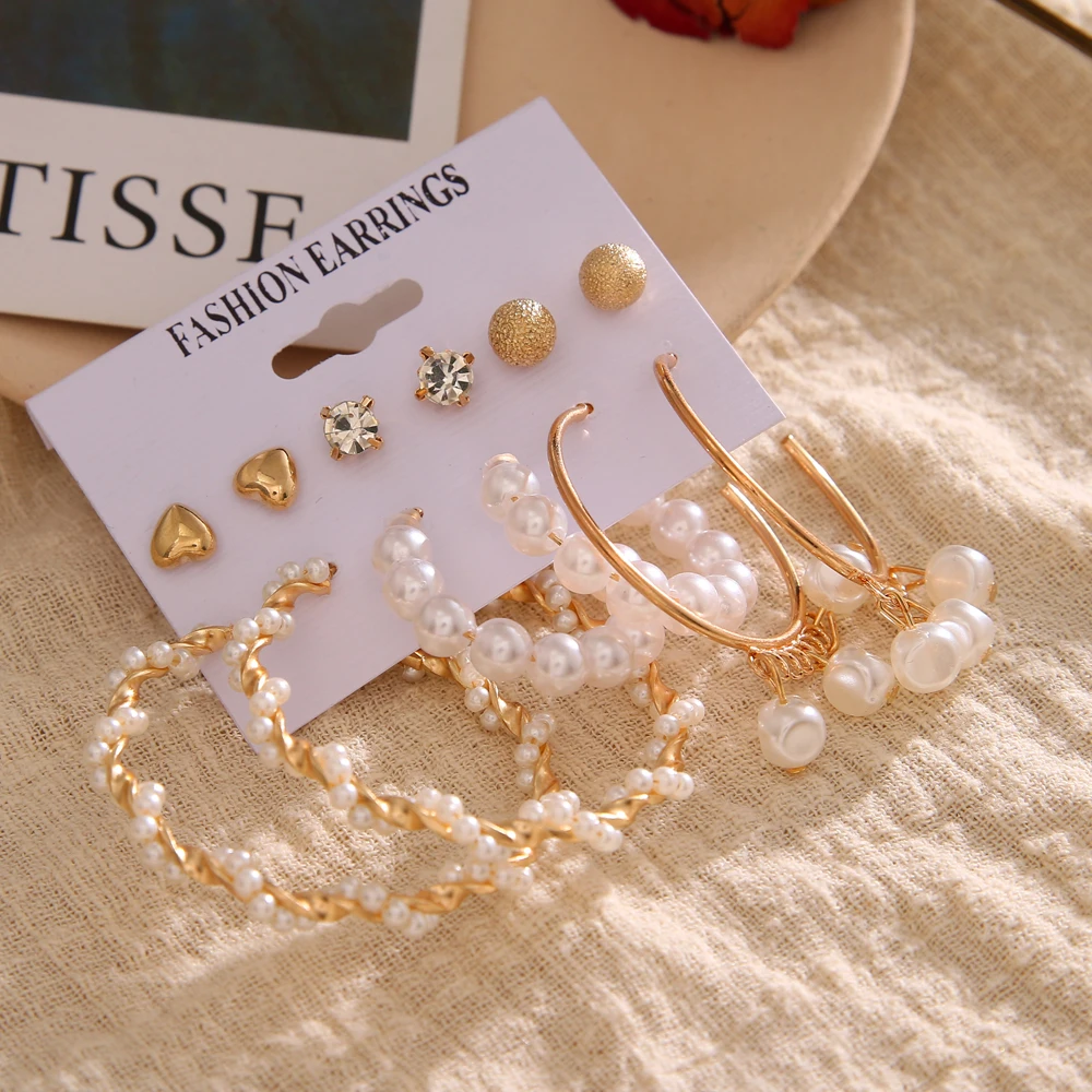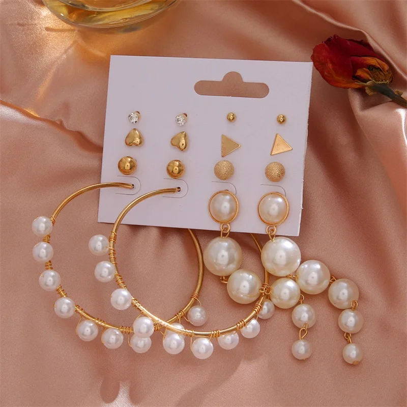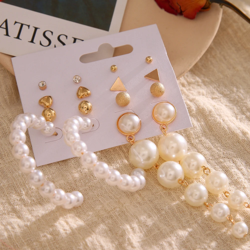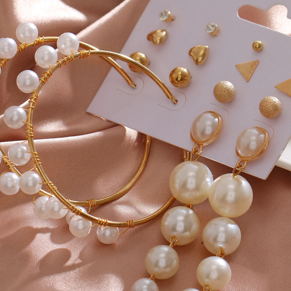 Женские богемные серьги FNIO, набор больших геометрических металлических сережек-подвесок золотого цвета, жемчужные серьги-кисточки, модные ювелирные украшения, 2020