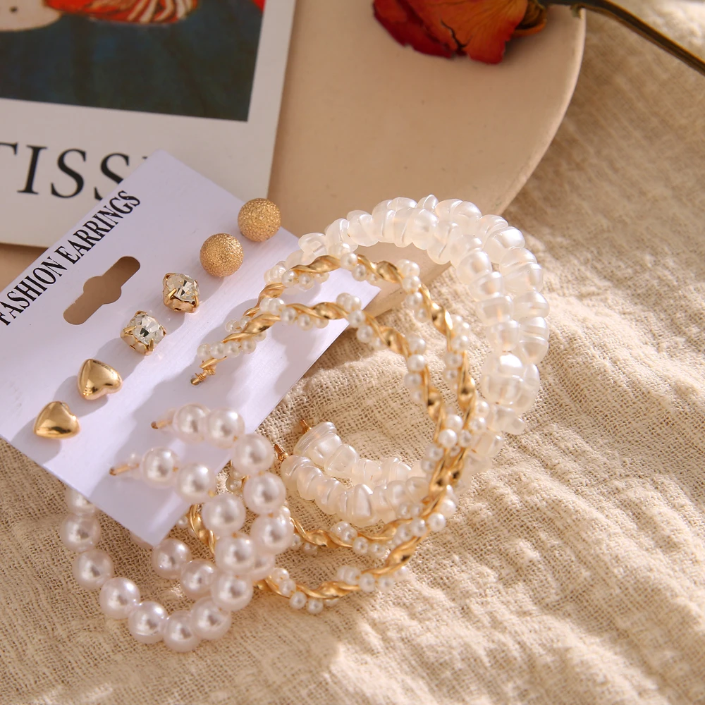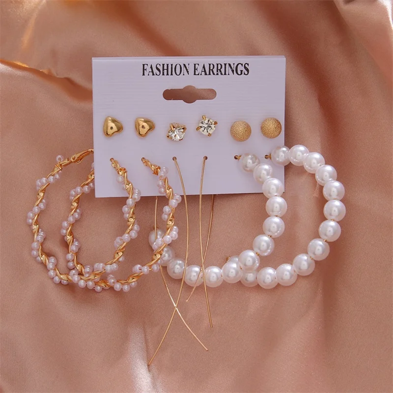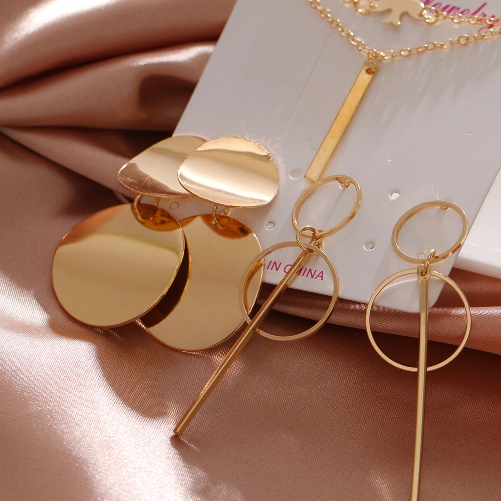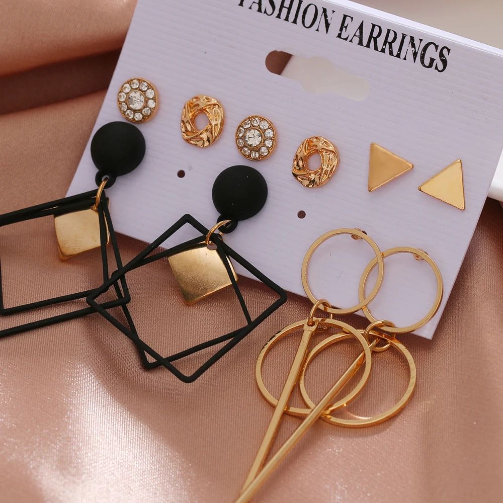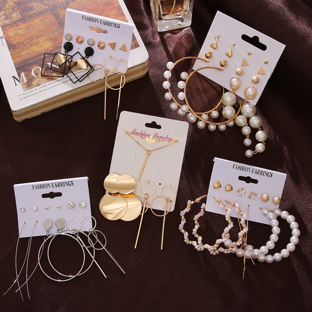 Женские богемные серьги FNIO, набор больших геометрических металлических сережек-подвесок золотого цвета, жемчужные серьги-кисточки, модные ювелирные украшения, 2020