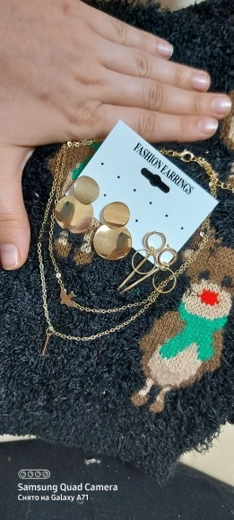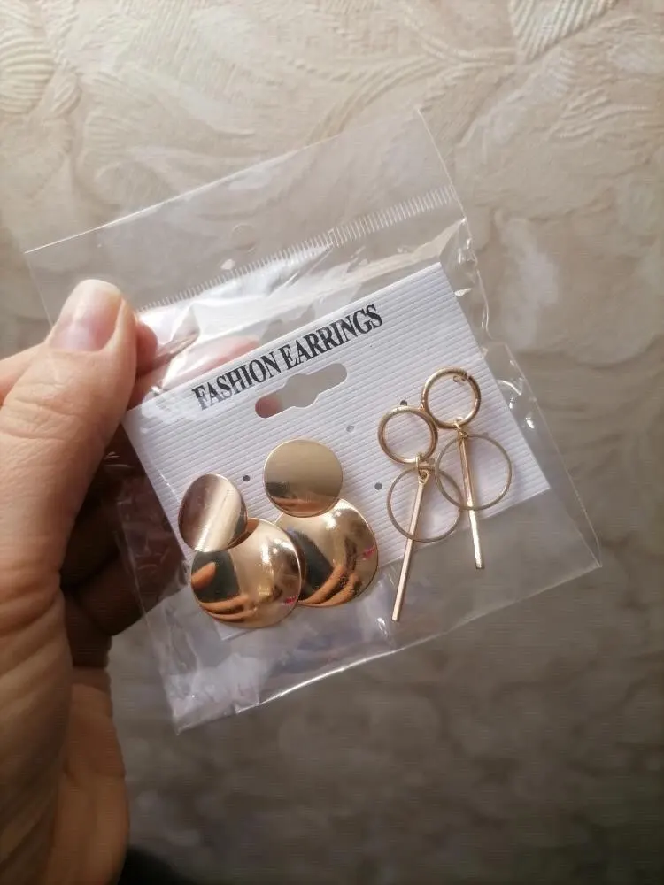 Серёжки очень хорошие, выглядят как на фото, однако, они из такого материала, что бижутерия бижутерией. Смотрятся очень стильно, мне прям реально понравилось))) большое спасибо продавцу за быструю отправку и доставку ♡ Товар однозначно рекомендую! Ps. Был небольшой брак в виде не продырявленной застежки, но это ни разу не проблема.