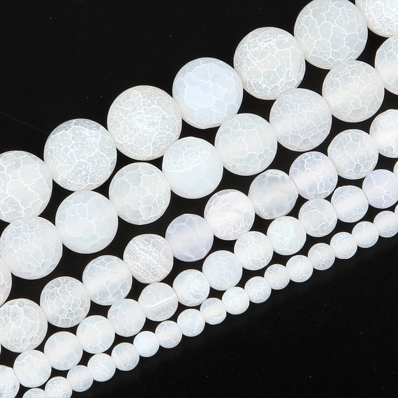 Бусины из натурального камня, матовый белый, треснувший огонь мечты Агаты, драгоценные бусины, бриллиантовые браслеты 4681012 мм