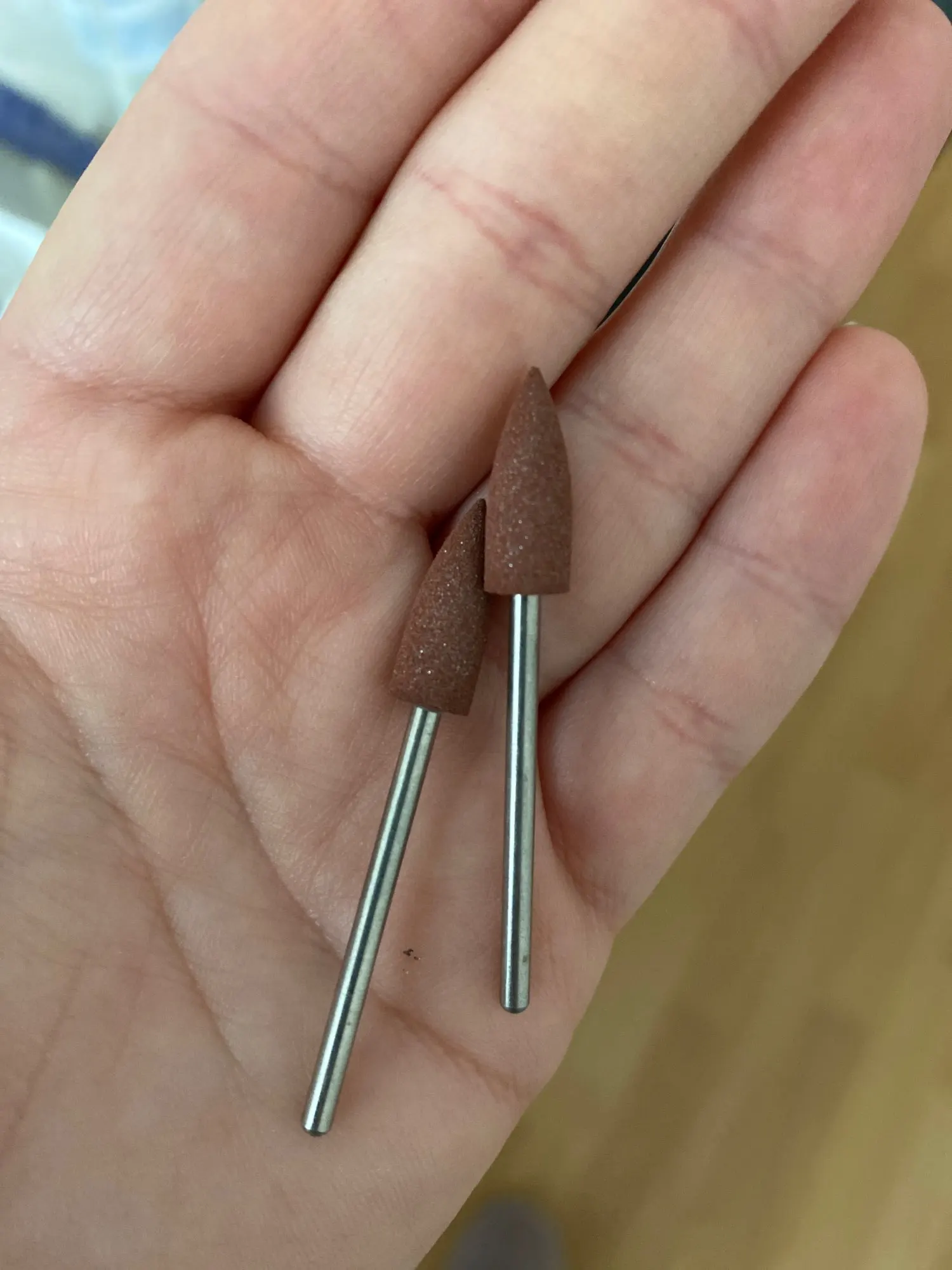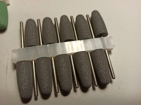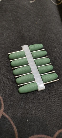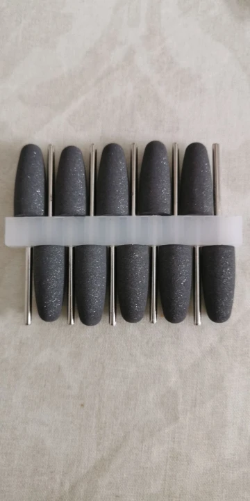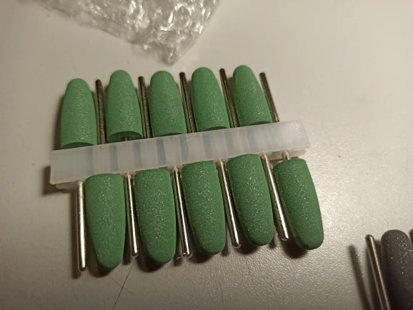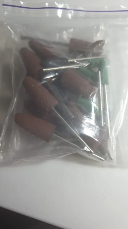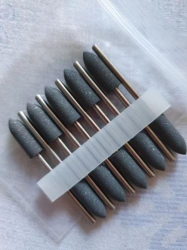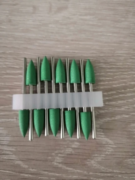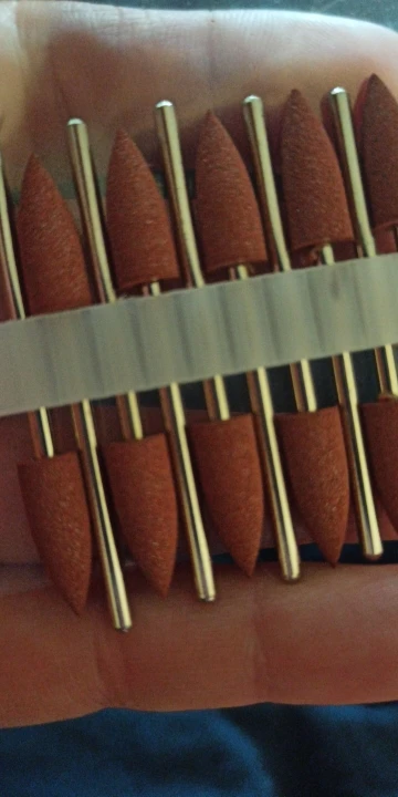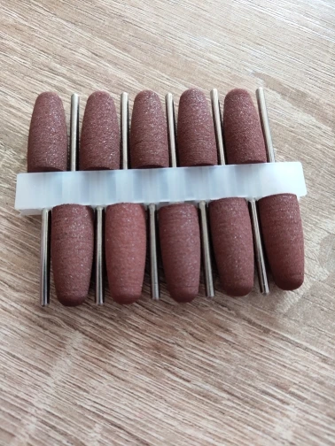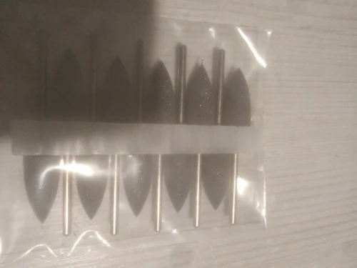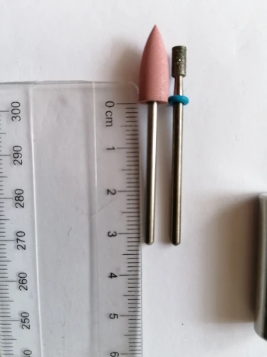 Хвостовик 32мм, из 10 фрез - 2 плохо прошли Ruck тестовую гильзу - небольшое искривление хвостовика. Остальные 8 отлично подойдут для педикюрного аппарата Ruck Nova. Абразивная часть - хорошо абразивная, подойдет для грубой шлифовки ногтей на ногах после гель лака для снятия базового слоя, или шлифовки дефектов ногтя. Очень рекомендую - отличное соотношение цена-качество. Буду брать еще