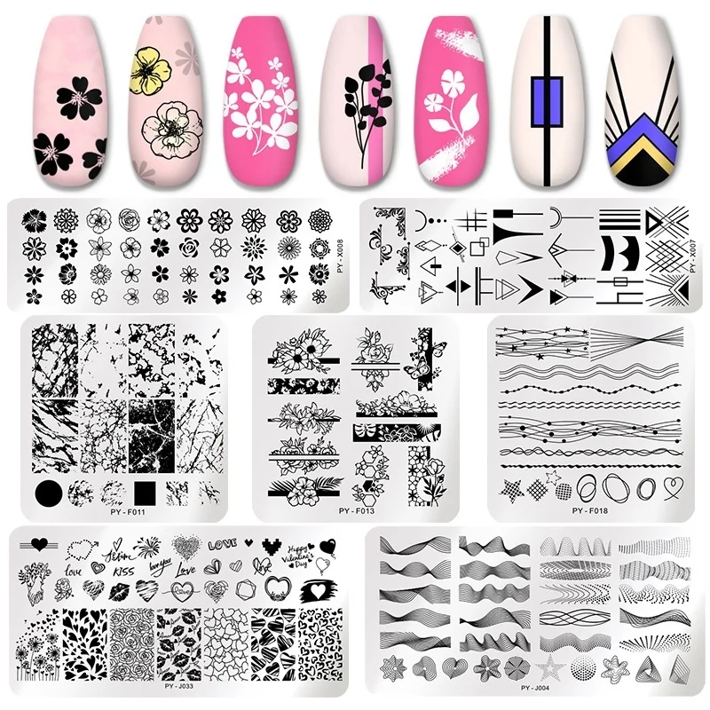 Пластина для стемпинга ногтей PICT YOU, с геометрическими цветами, из нержавеющей стали