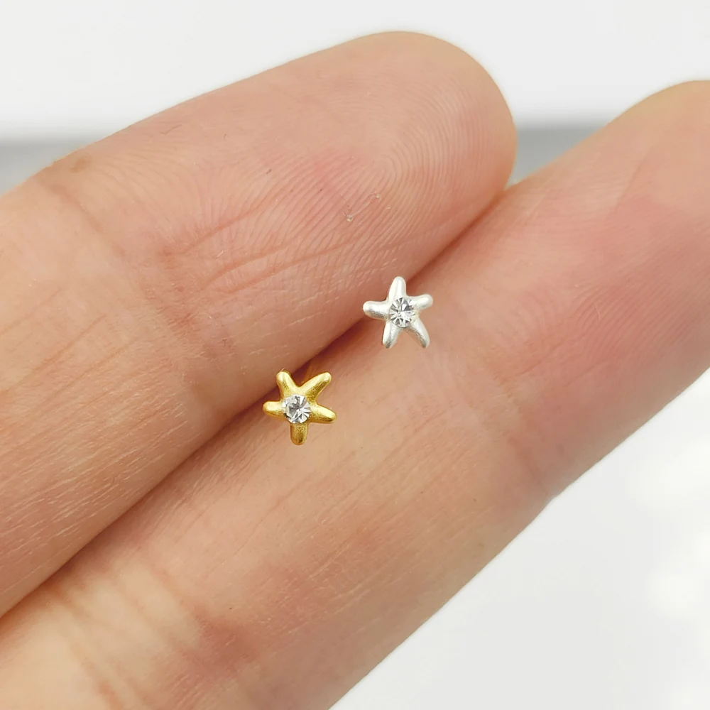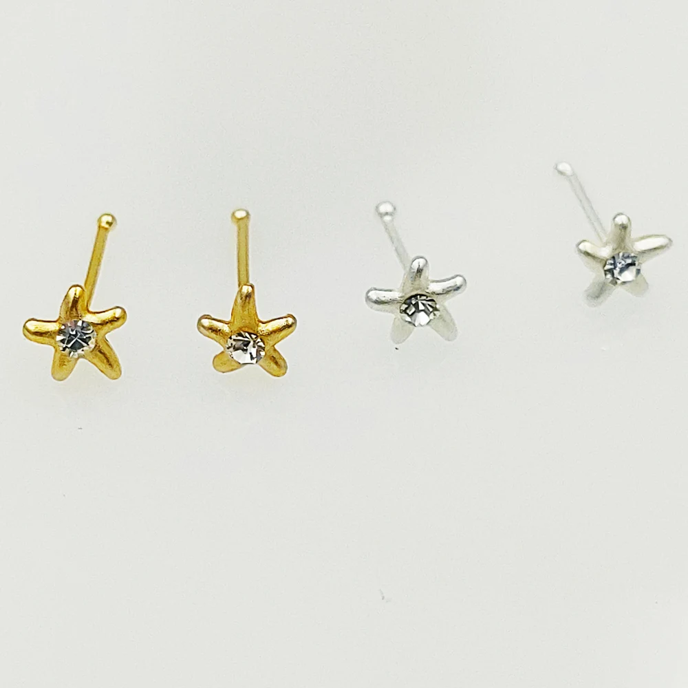 925 пробы серебро 2 мм в виде морской звезды прозрачного хрусталя штырь носа серьги-гвоздики для пирсинга носа 20 шт./кор.