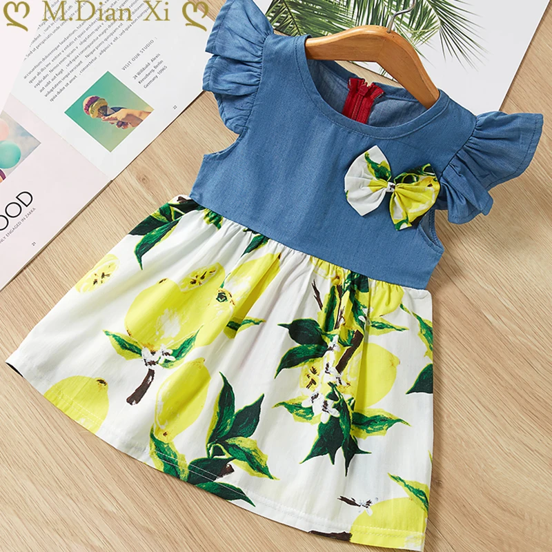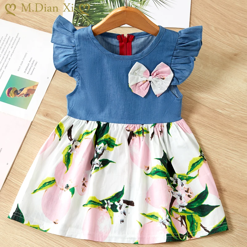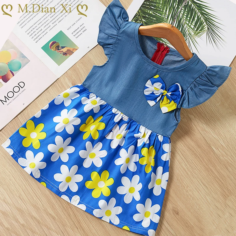 Платье для девочек, летняя одежда для девочек, новое джинсовое платье с рукавами-летящими ромашками, вечерние платья-пачки для девочек на день рождения, платье для девочек, платье для девочек на день рождения, вечерние платья