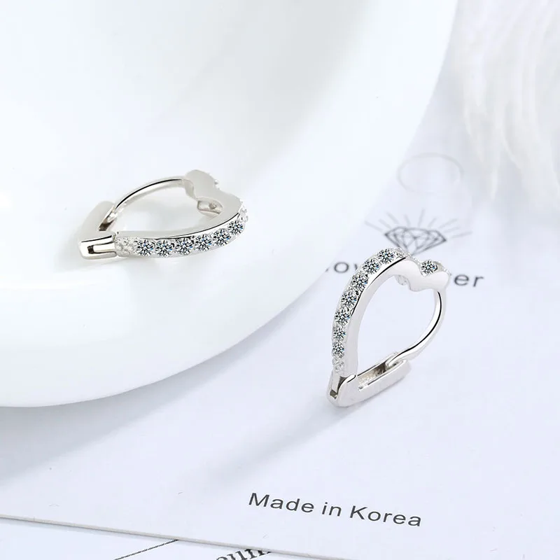 Fashion 925 Silver Clear Zirconia Lover Heart Hoop Earring For Baby...