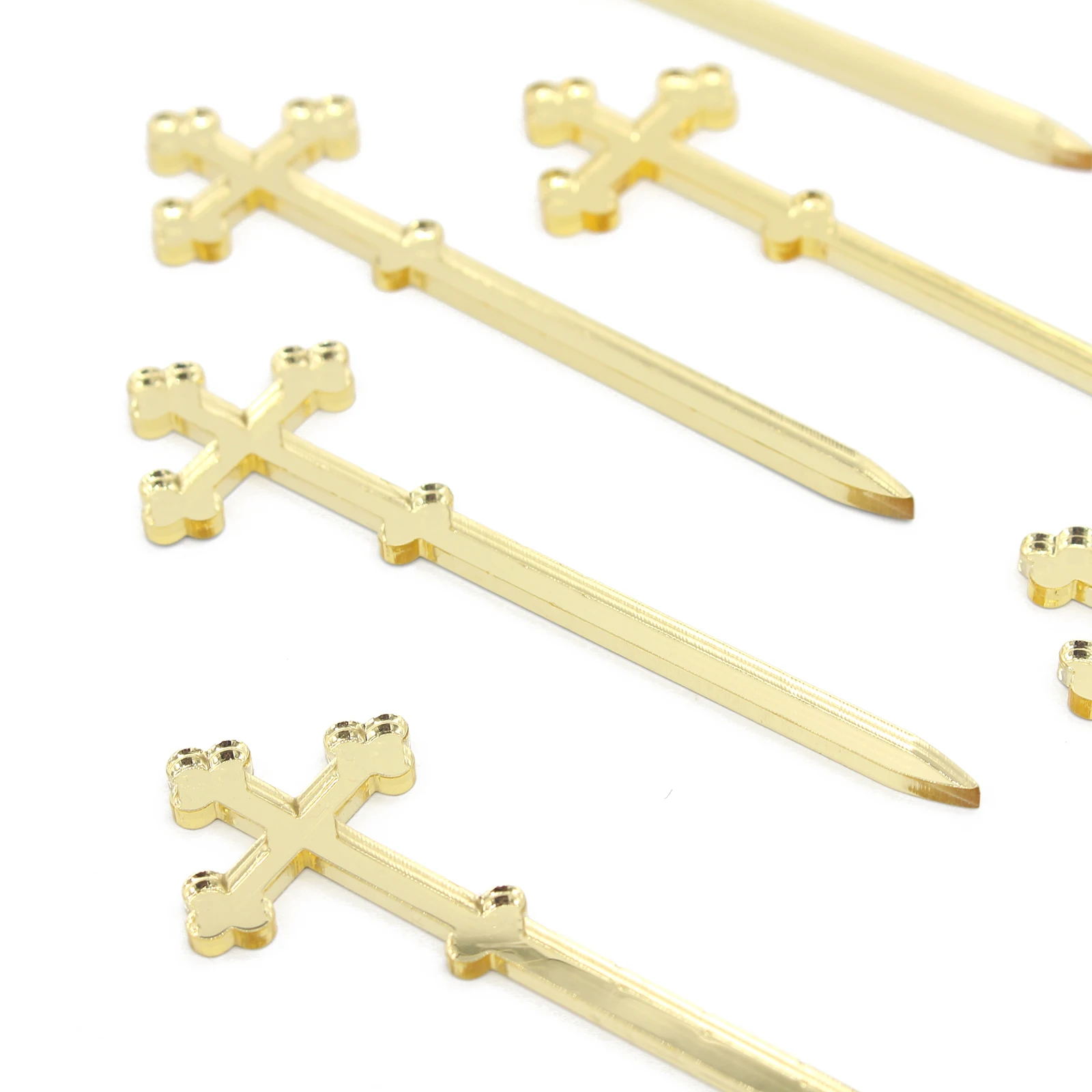 12 * персонализированные Золотые Зеркальные акриловые чашки в форме Святого Креста для украшения торта на день рождения и крещения