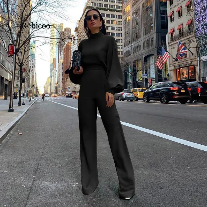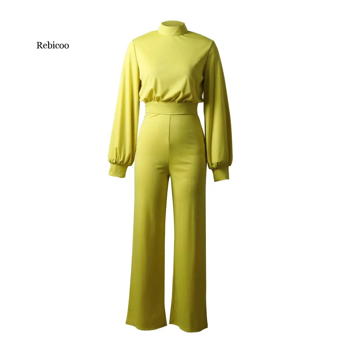 Комбинезон женский осенний, облегающий, однотонный, с рукавами-фонариками и ложным воротником
