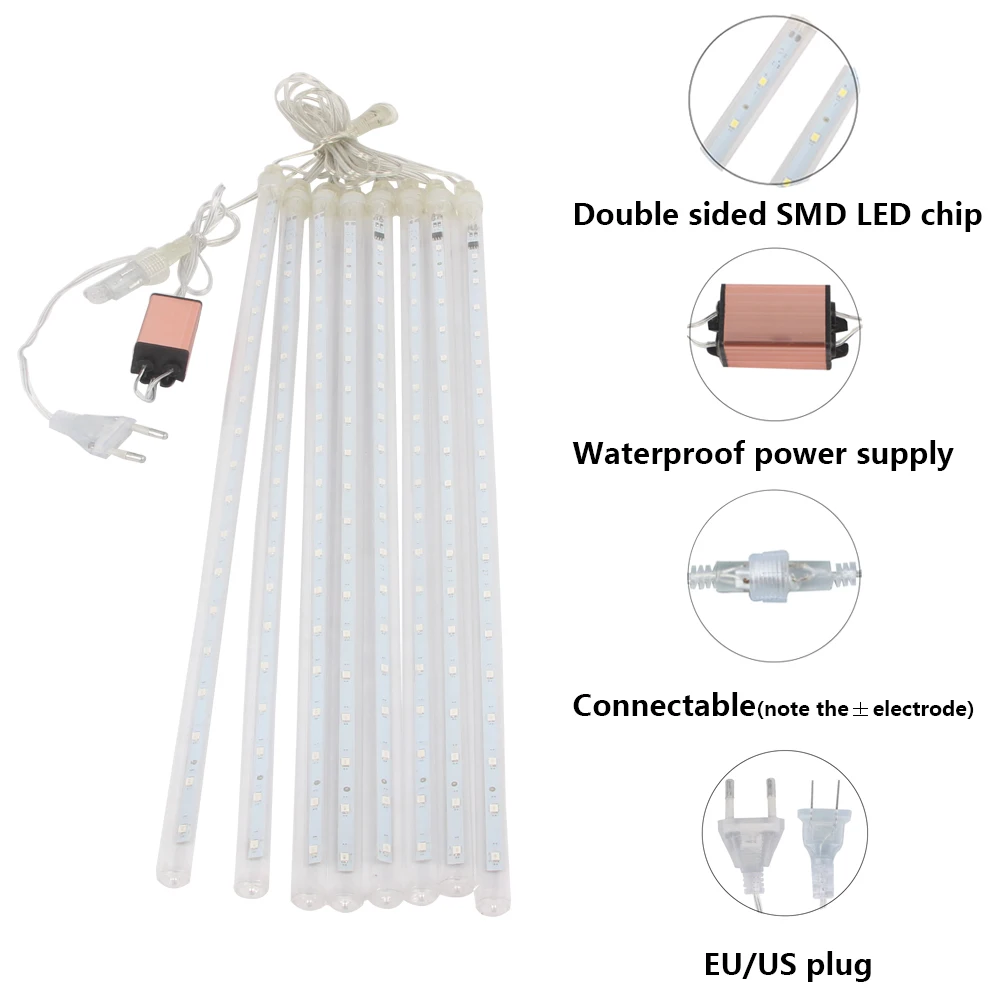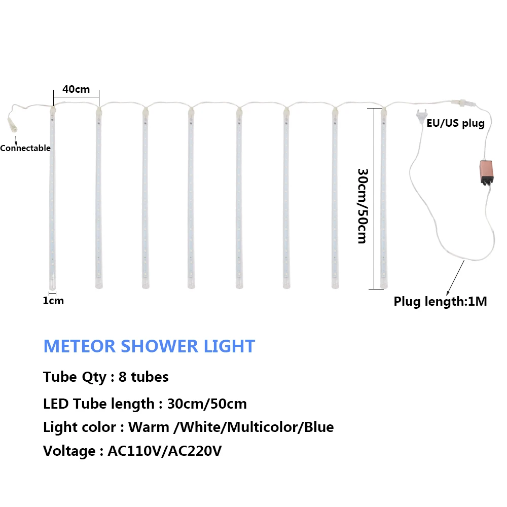 Гирлянда светодиодная, 30 см, 50 см, 8 трубок, метеоритный дождь