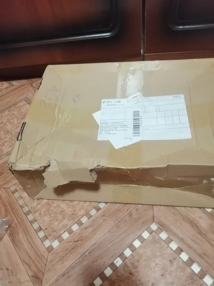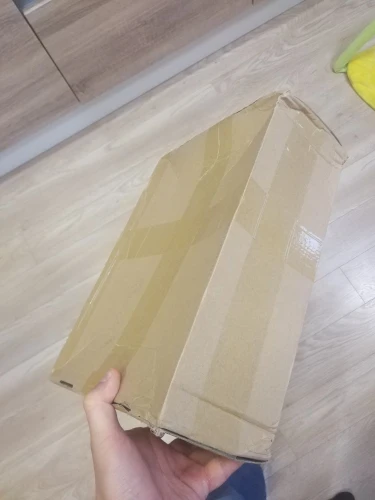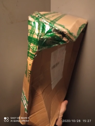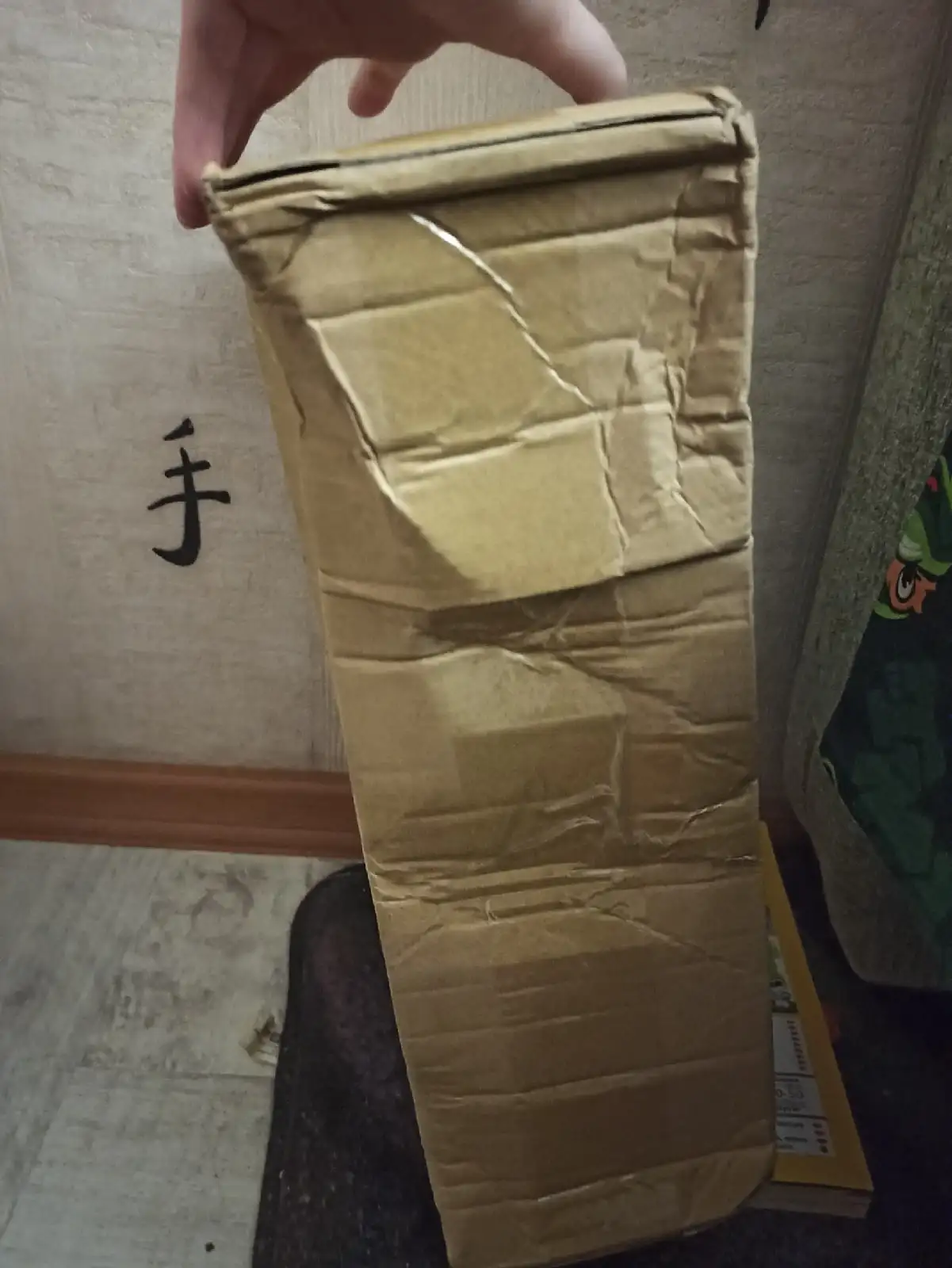 Коробка сильно помята. Но товар кажется не пострадал. Просите упаковать хорошо.
