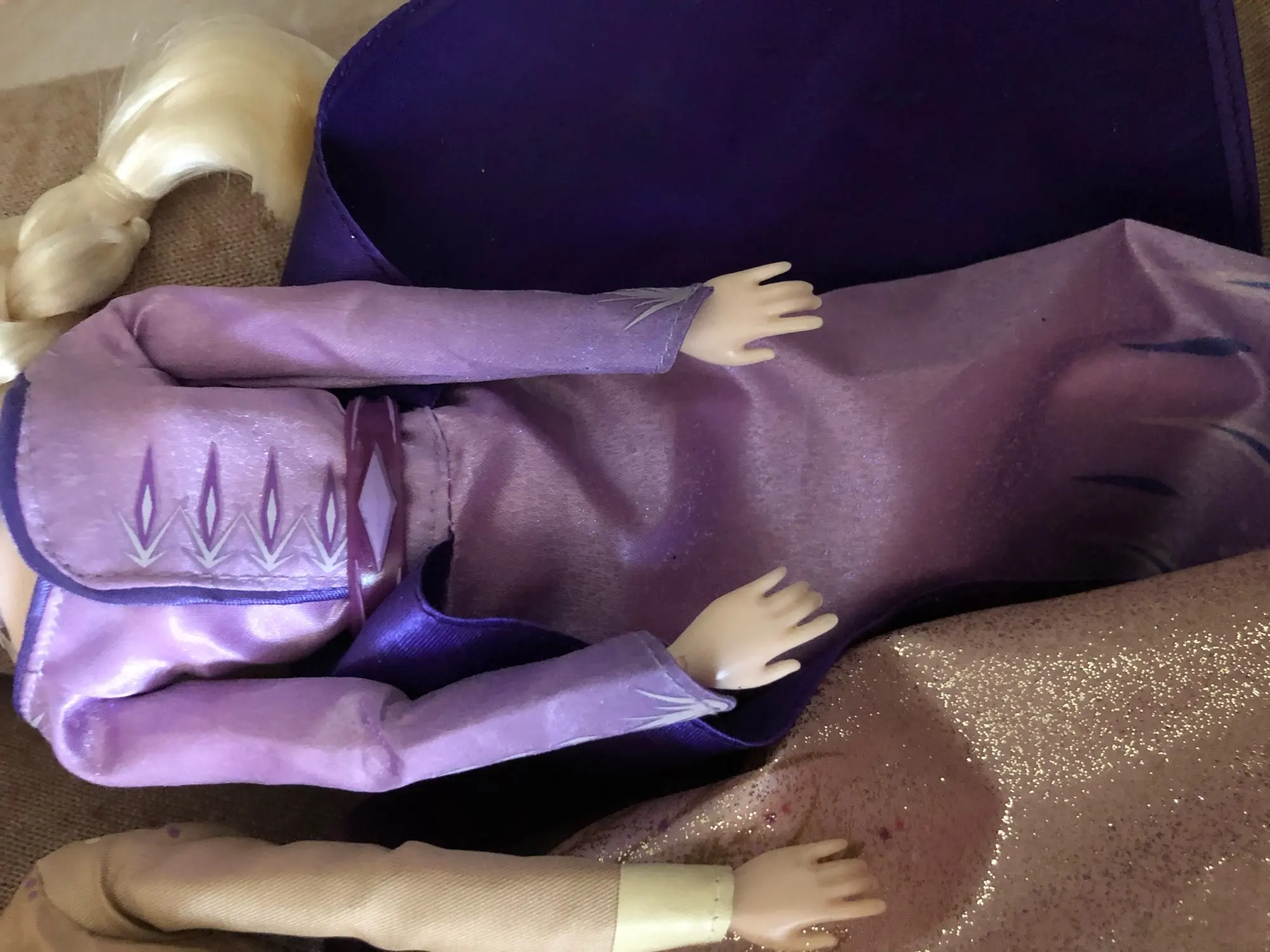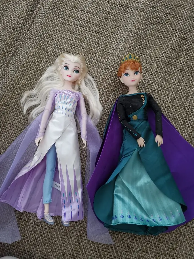 Куклы красивые очень, одежда приятная, прическа у Эльзы не уложенная, отличается от картинки. Самый большой минус для меня, что куклы не сидят. Руки двигаются, ноги двигаются колени, ступни, а вот повернуть в районе бедра до "сидячего" положения не удается