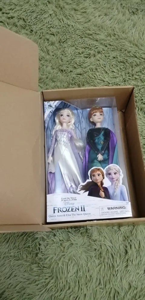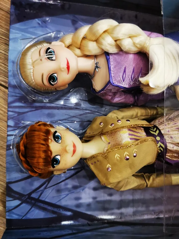 Коробка была помята, но не критично, куклы целые. У Эльзы глаза кривоваты. В остальном куклы прекрасные.