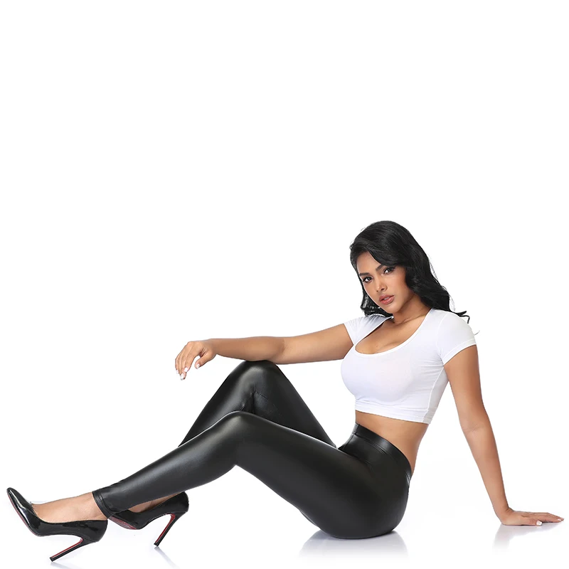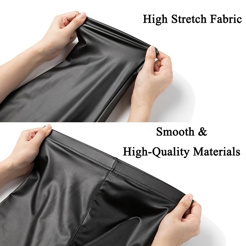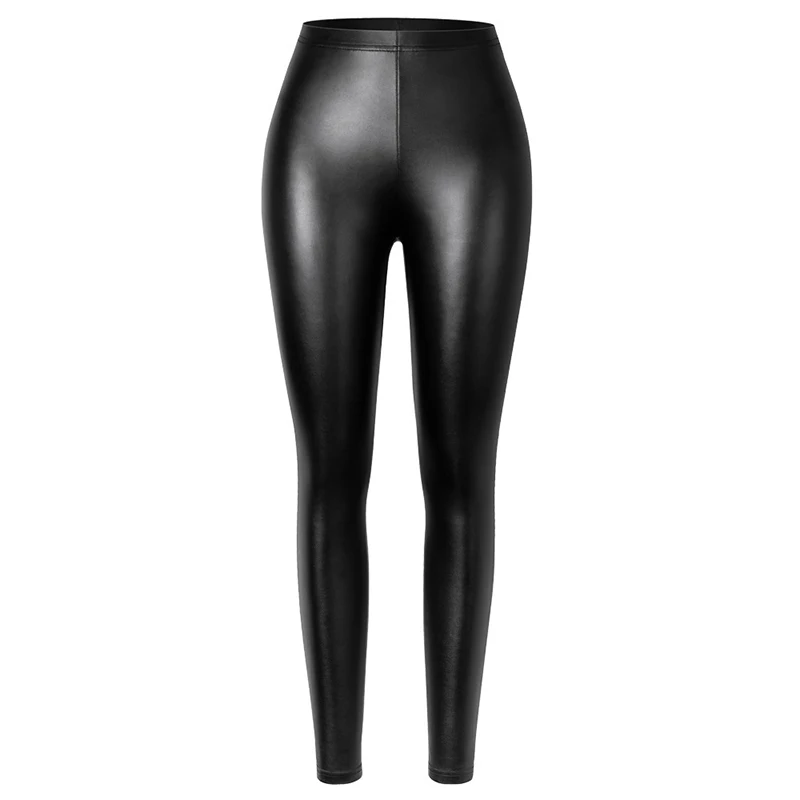 Леггинсы женские из искусственной кожи, с высокой талией, эластичные, стрейчевые, размера плюс