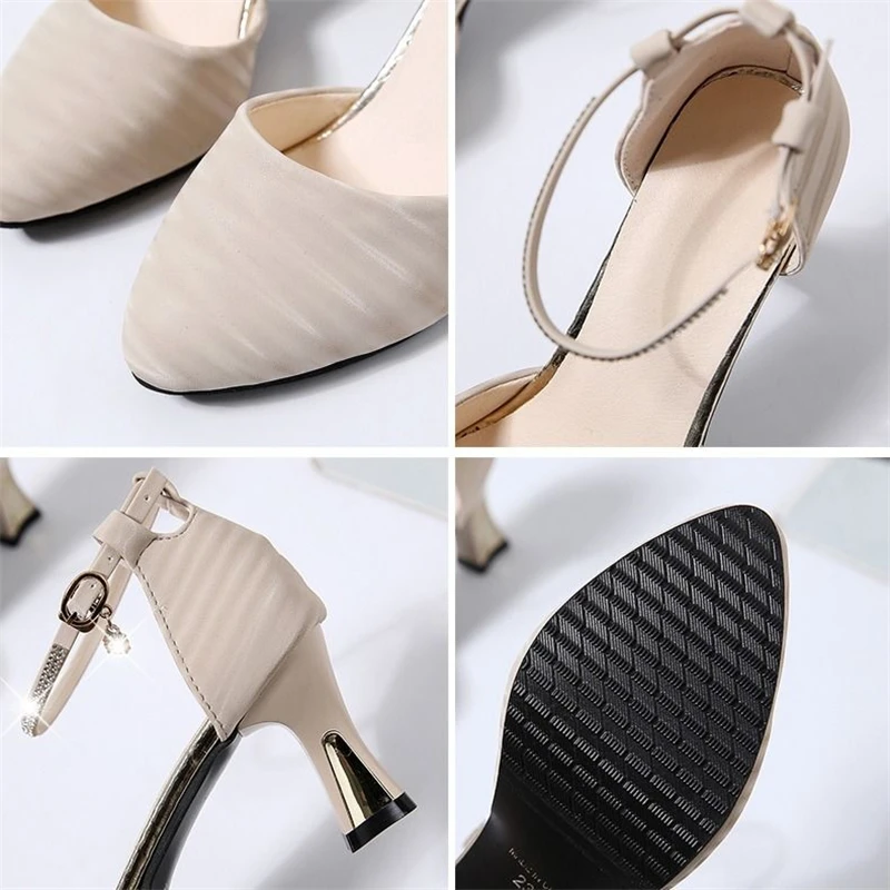 Туфли-лодочки женские на высоком каблуке, модные туфли для вечеринок и ночных клубов, пикантные свадебные туфли с ремешком и пряжкой, серебристые, G5955
