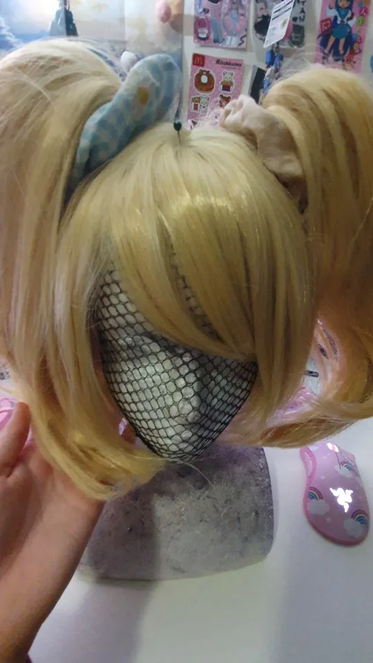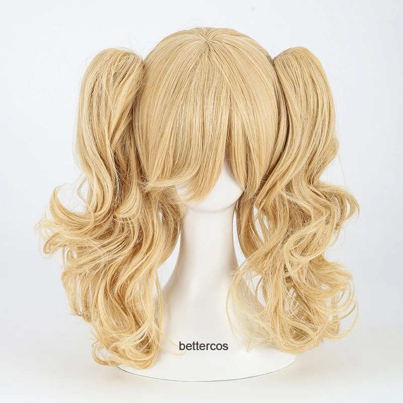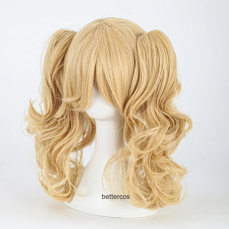 Парики для косплея Harley, Короткие золотистые блондинки, кудрявые, с кудрявыми хвостиками, термостойкие синтетические волосы, парик + шапочка для парика