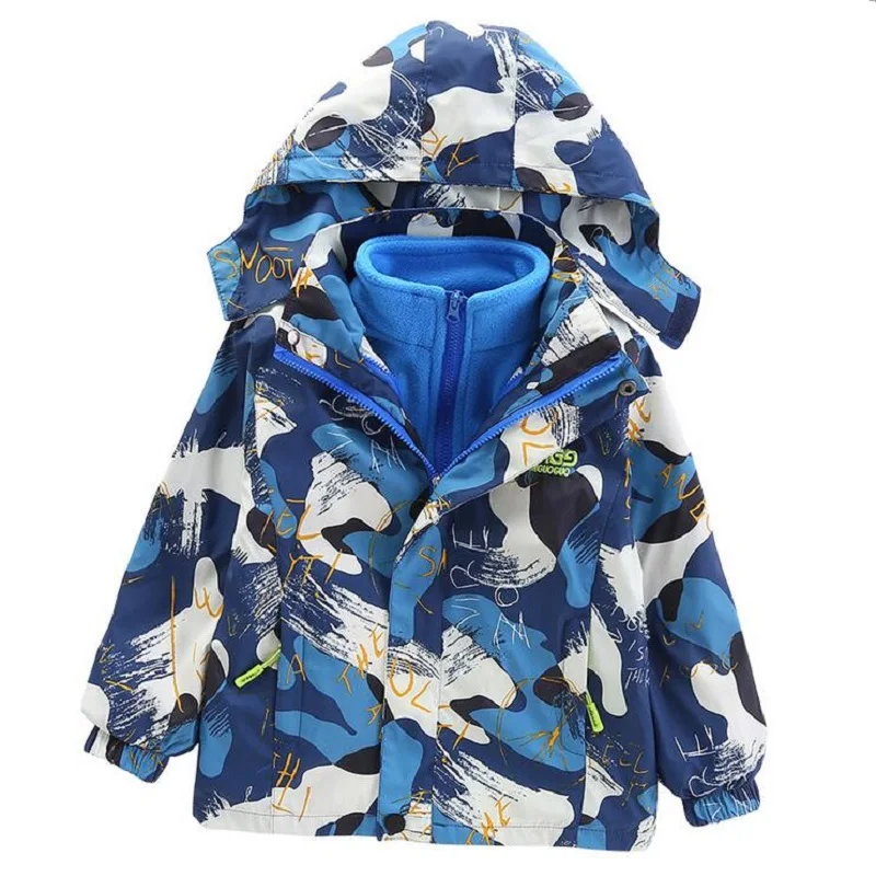 Детская верхняя одежда со съемным спортивное пальто на осень и зиму, с подкладкой, уплотненные, теплые, в одном стиле Три в одном, ветрозащитная куртка для детей Топы для мальчиков одежда на возраст от 3 до 15 лет