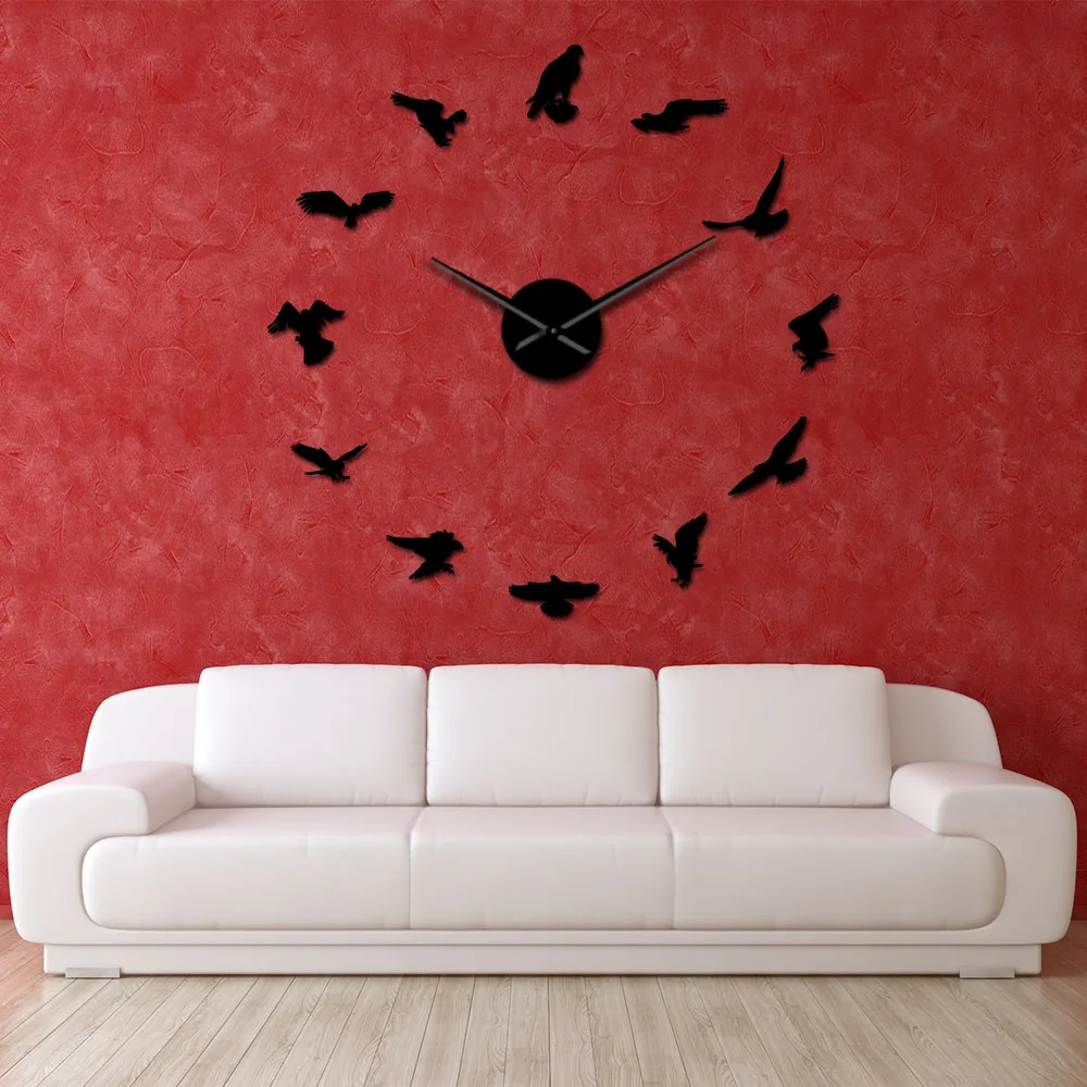 Самоклеящиеся часы Falconry Bird для самостоятельной сборки, бесшумные Кварцевые бескаркасные часы Falcon с большими иглами, бесшумные Крутые Настенные Часы для рисования
