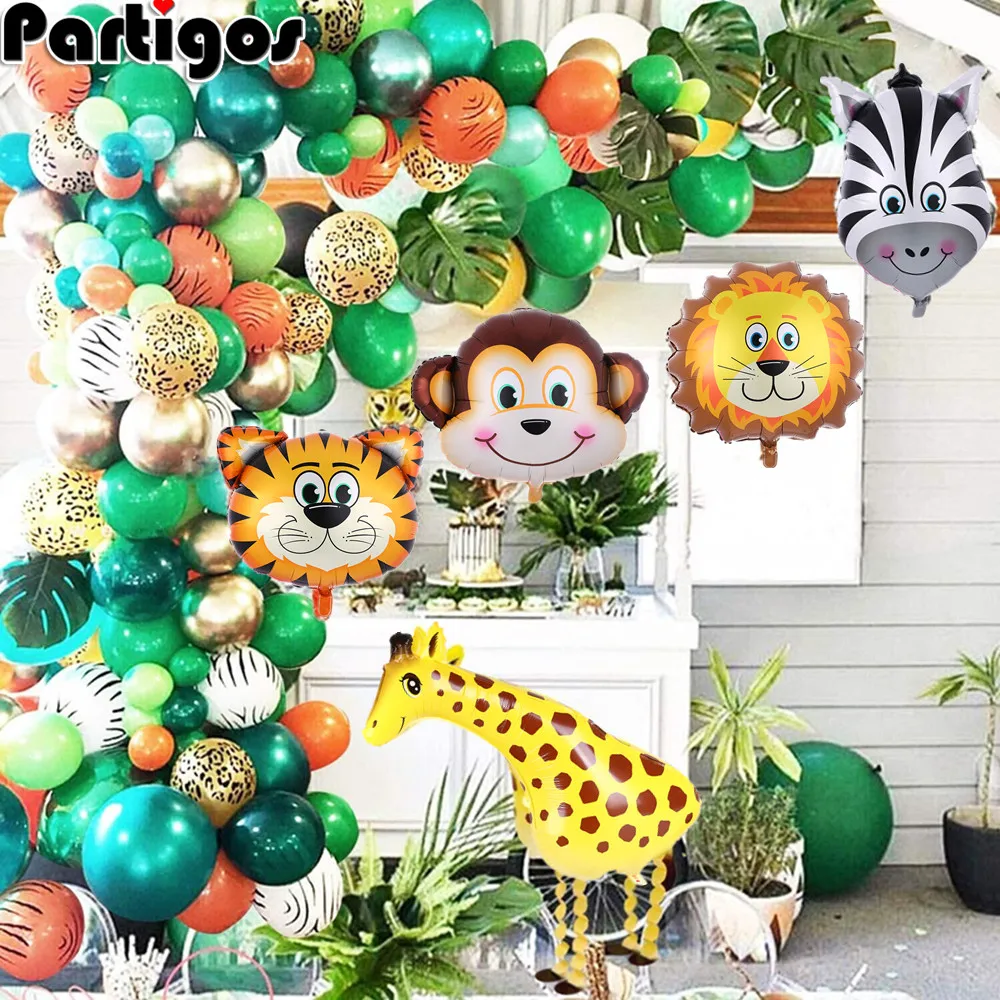 Воздушный шар для темативечерние НКИ сафари в джунглях, комплект гирлянды, воздушные шарики в виде животных, Пальмовые Листья, для вечевечерние в честь рождения малыша, детский день рождения, день рождение мальчика