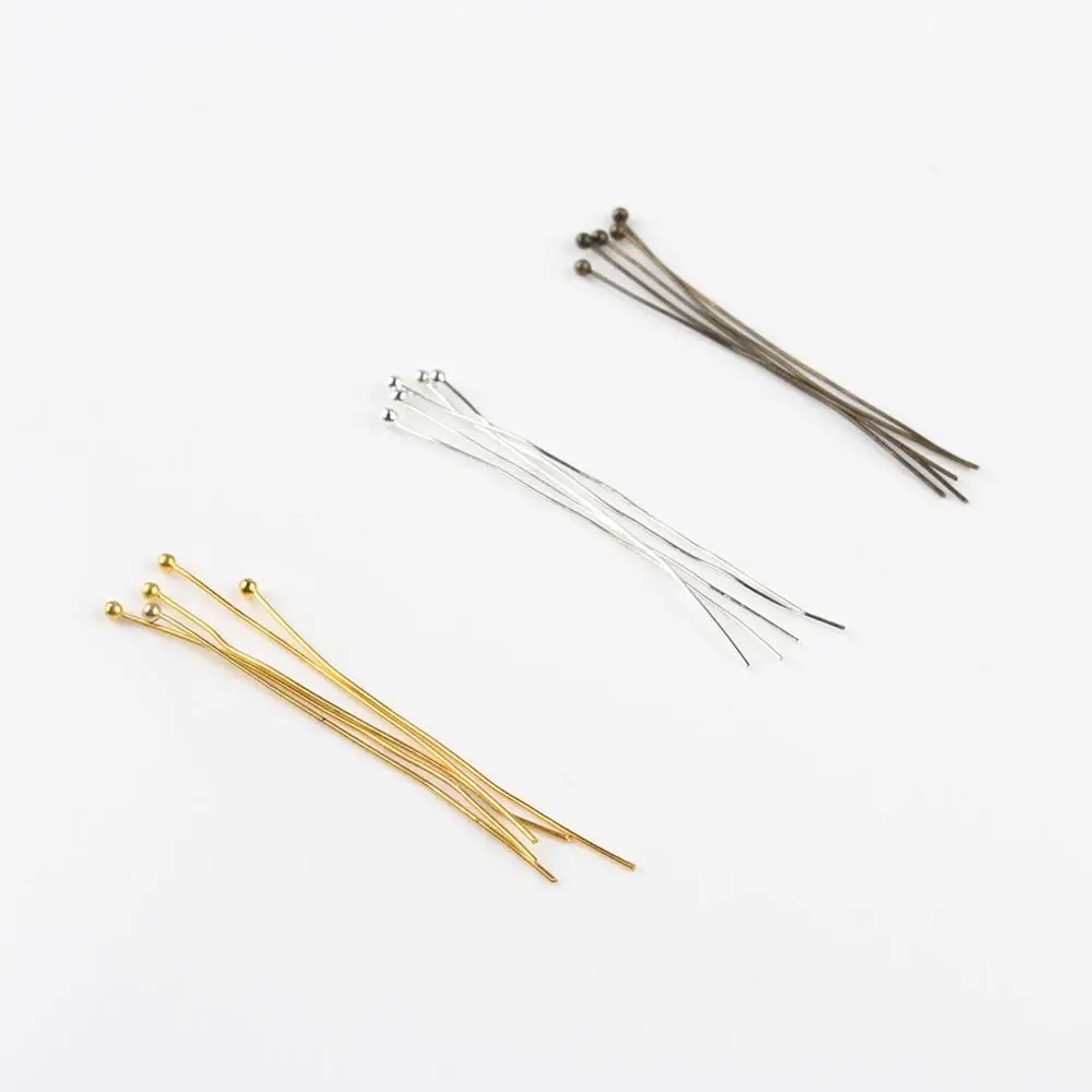 Штифты с шариковой головкой из металла и металла, комплектующие для изготовления аксессуаров для украшений сделай сам, 20304050 мм, цвет золото и родий, 200 шт.лот