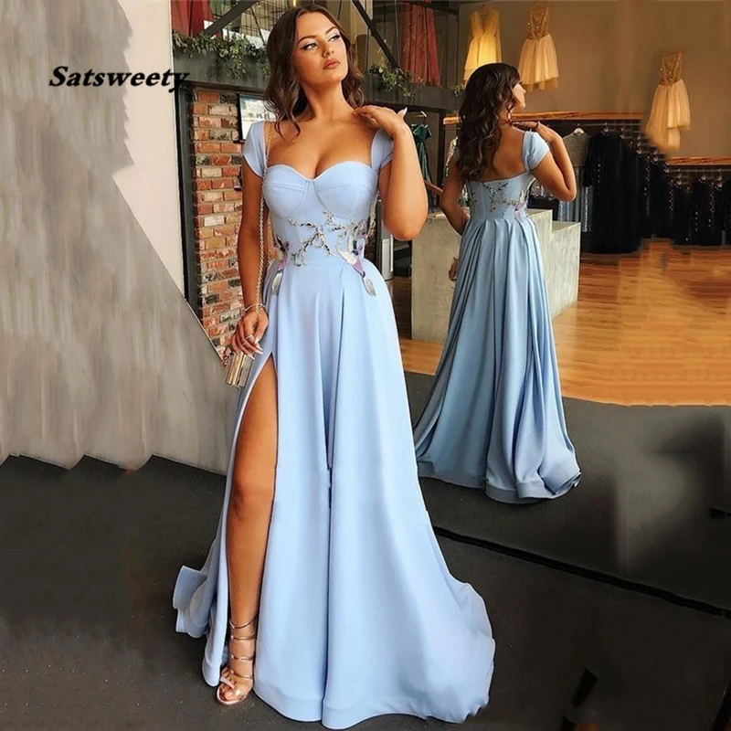 Небесно-голубые официальные платья для выпускного вечера, 2022, Сексуальные вечерние платья с аппликацией и разрезом сбоку, платья для выпускного вечера с рукавом-крылышком
