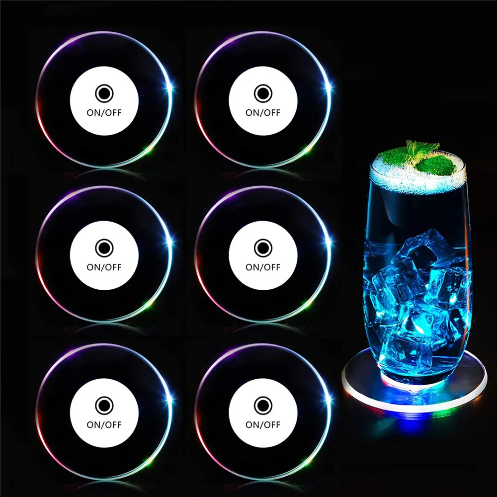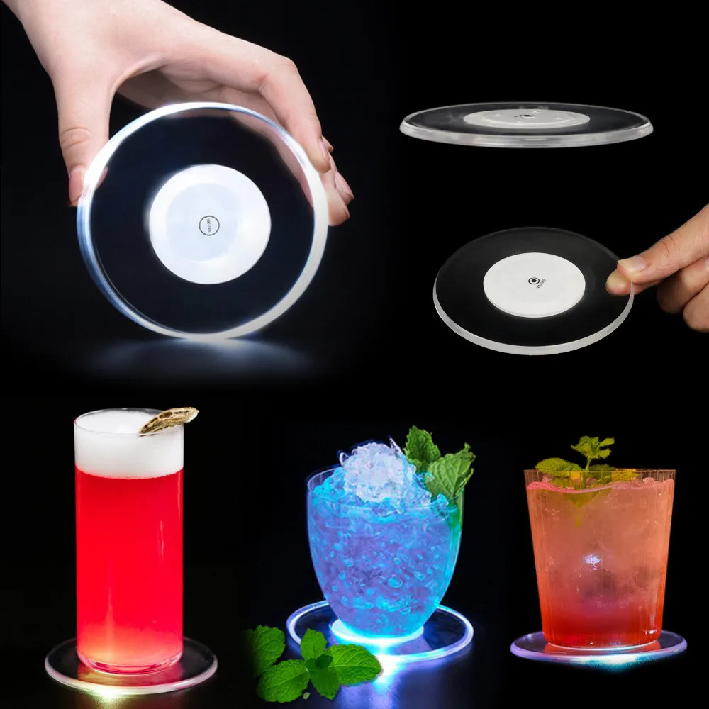 5 шт. 10 см акриловые светодиодные мигающие подставки светильник кой для коктейля, вина коврик для стеклянной чашки для Xams, бара, события, праздника, свадьбы, украшения для вечеринки