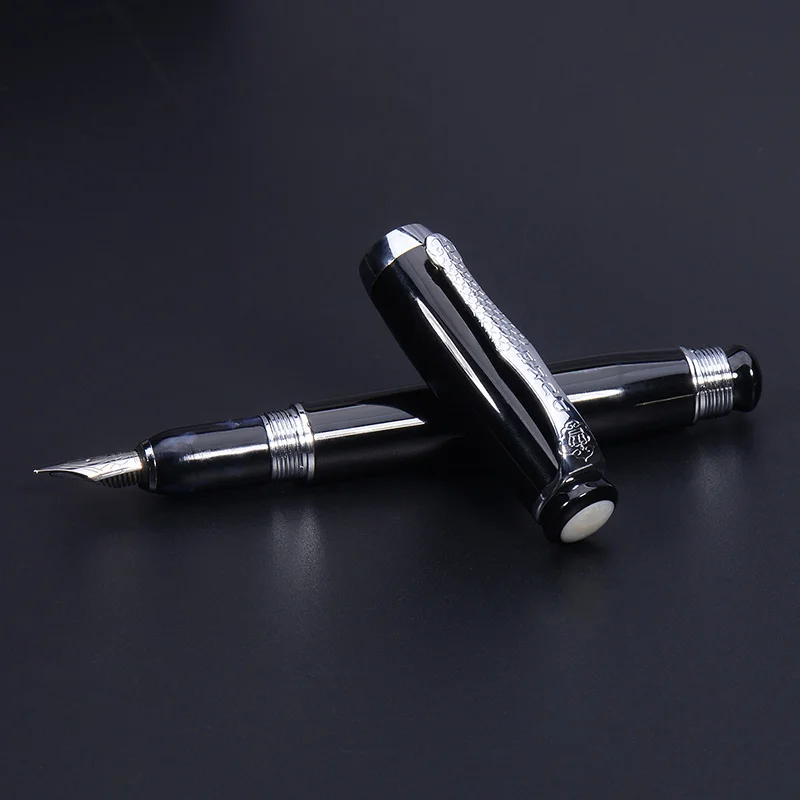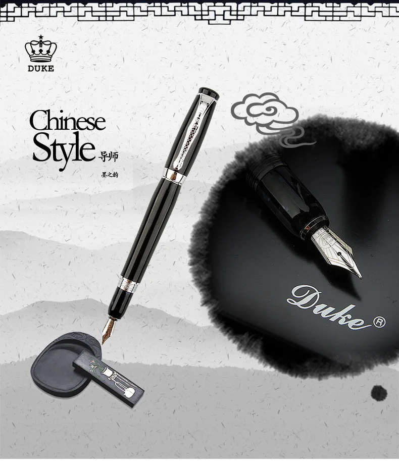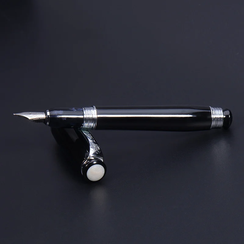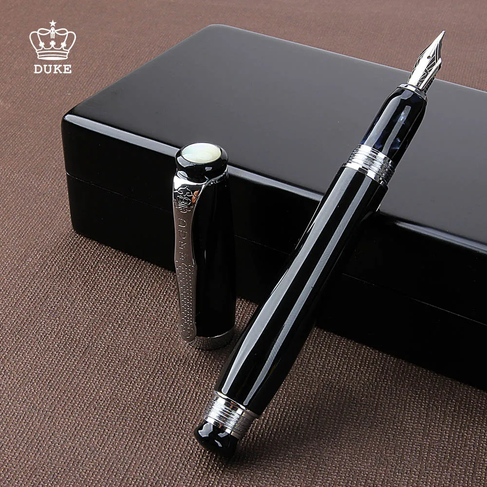 Классическая перьевая ручка Duke, Черная Бочка и белый жемчуг сверху, идеально подходит для бизнеса, офиса, дома или подарка