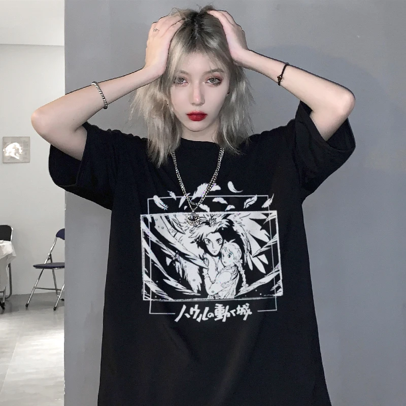 Женские винтажные футболки в стиле Харадзюку, черные футболки с при...