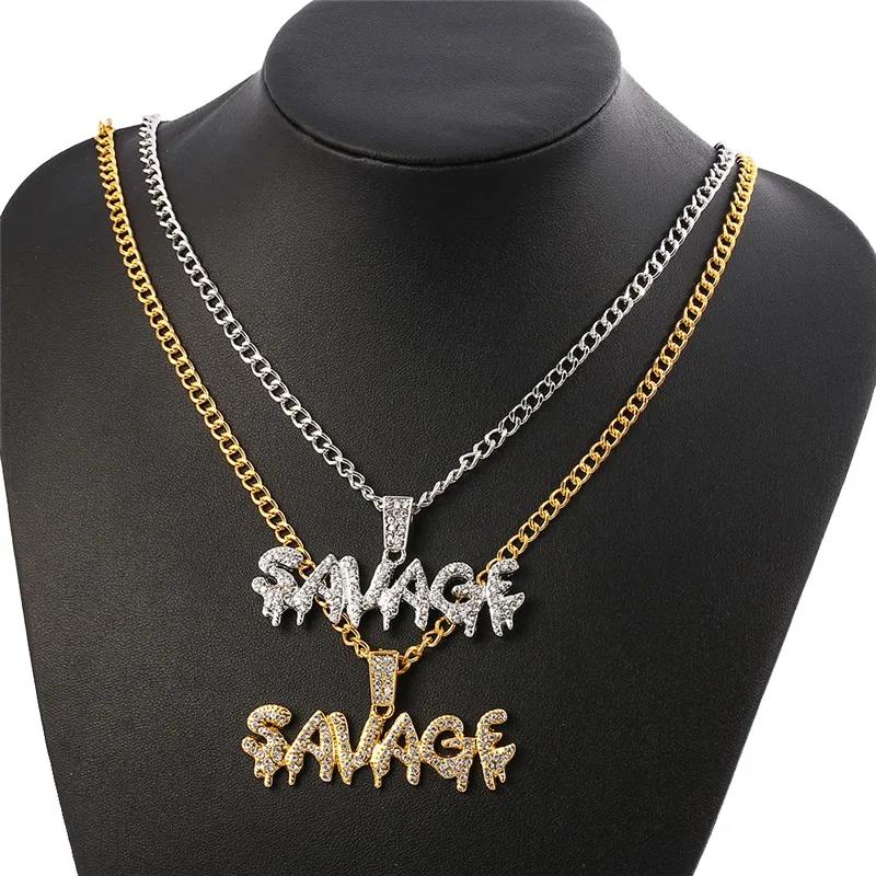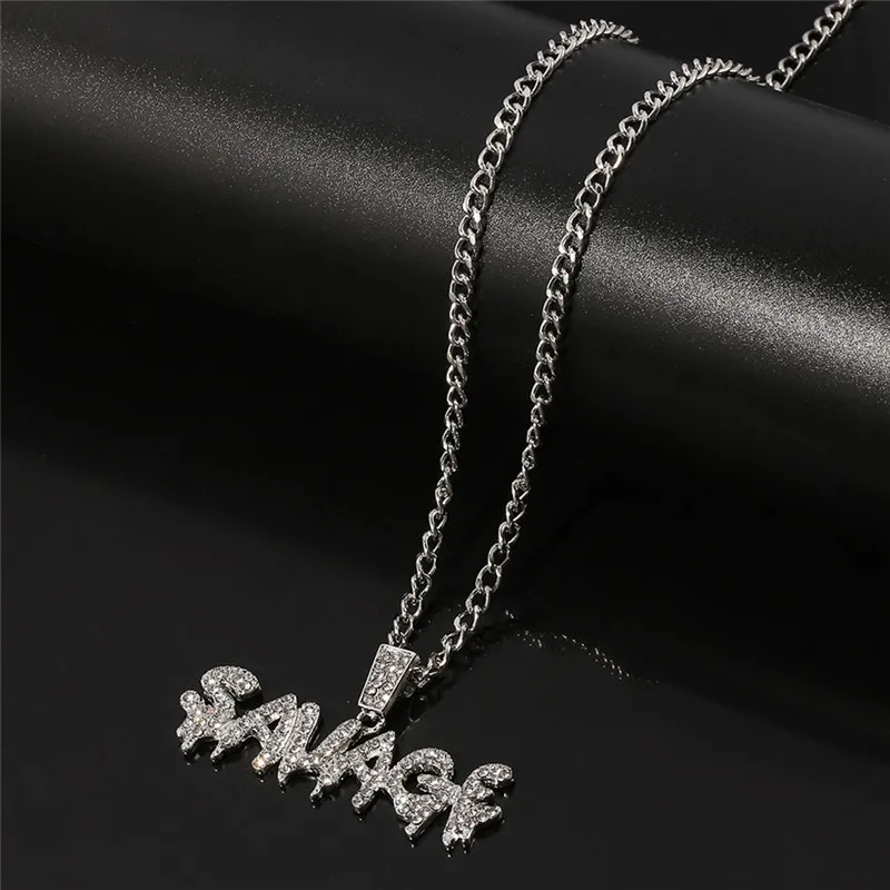 Цепочка с подвеской в виде надписи Savage Мужская, выразительное ожерелье со сверкающими звеньями, колье-чокер в стиле хип-хоп, бижутерия
