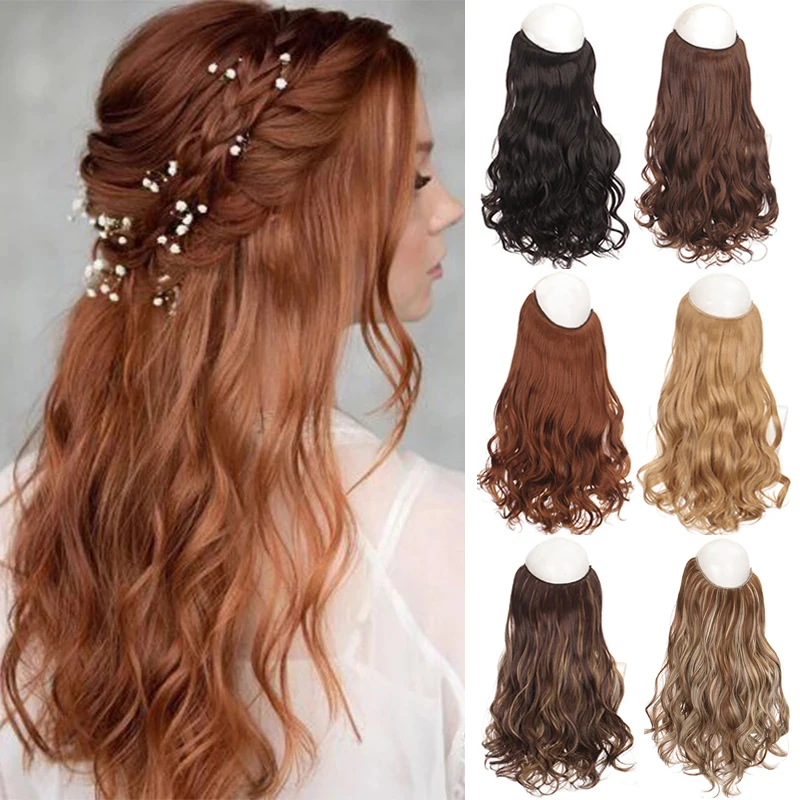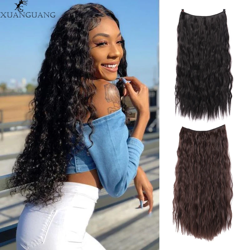 XUANGUANG 24 дюйма наращивание лески синтетический высокотемпературный натуральный парик наращивание волос для женщин прямой вьющийся парик