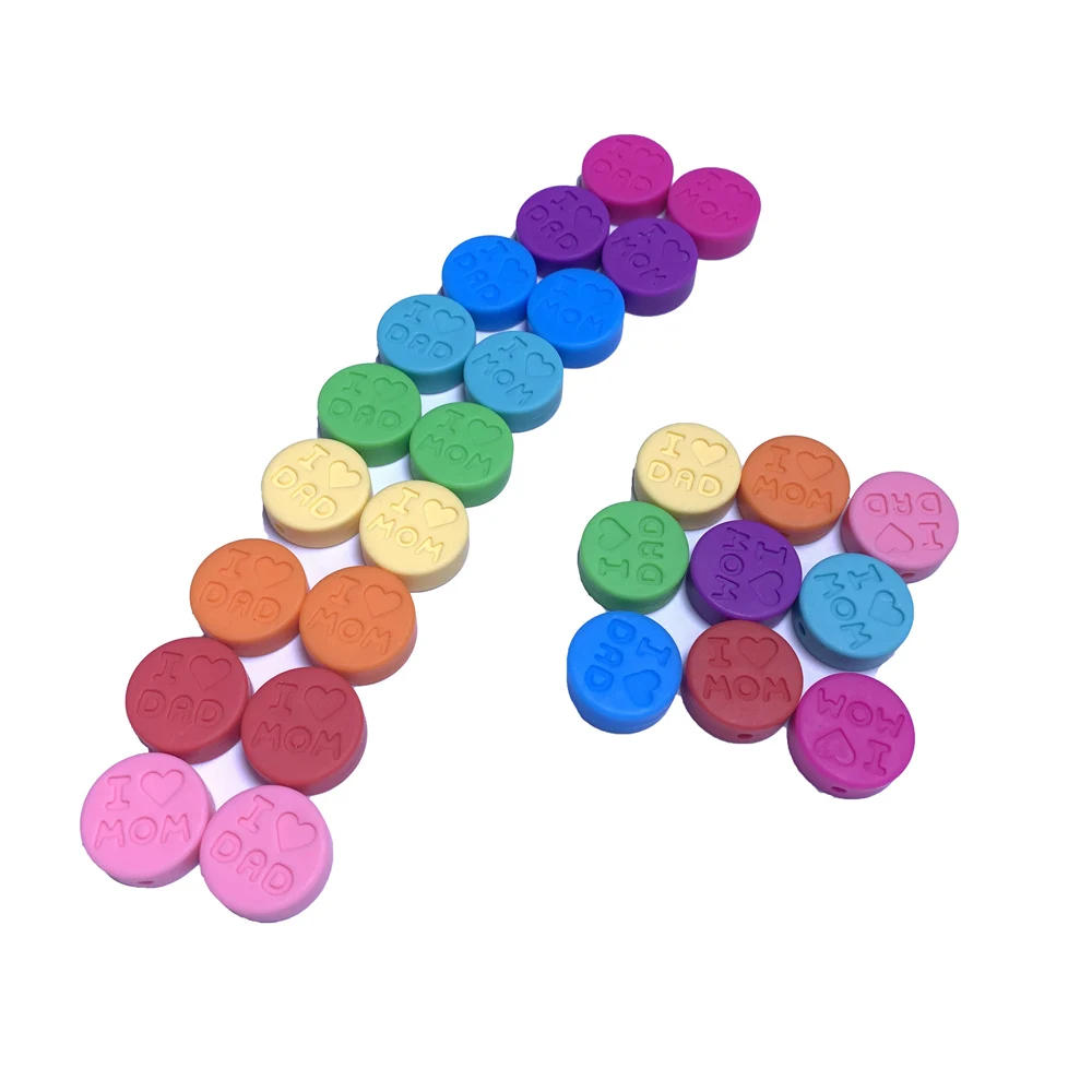 Бусины силиконовые с надписью I Love Dad Mom, 18 мм, 100 шт.