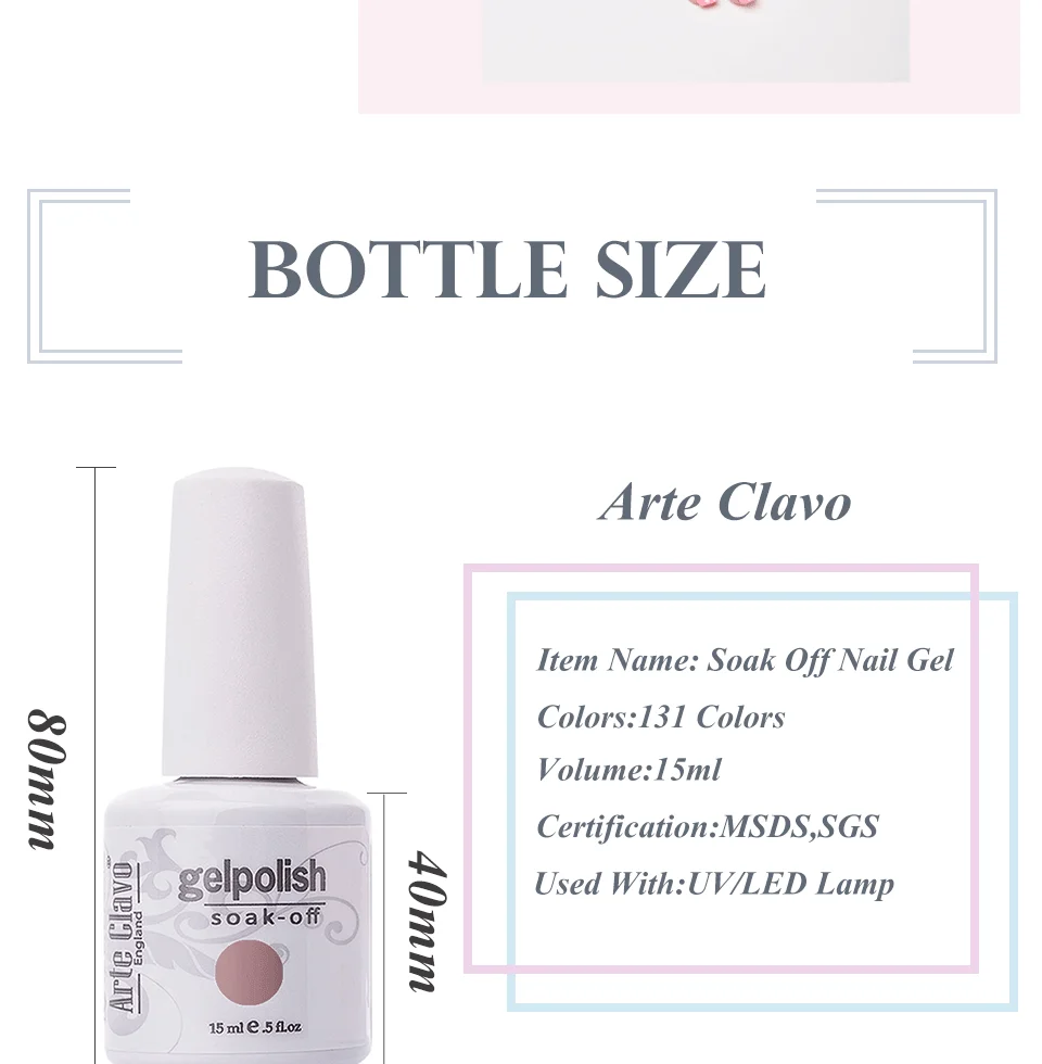 Arte Clavo 15 мл Розовый Цвет Гель-лак УФ светодиодный Гель-лак для ногтей отмачиваемый Гель-лак для ногтей Гель-лак для маникюра Гель-лак для ногтей арт-салон