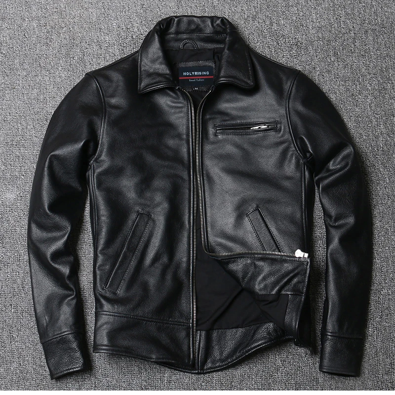 Мужская кожаная куртка, мотоциклетная куртка из 100% воловьей кожи,...