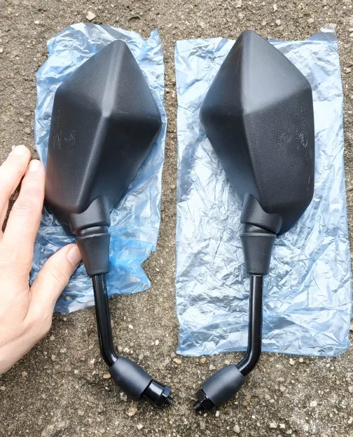 Зеркала для мотоциклов, полученные после 53 дней в пути, заказ полностью отслеживается, очень хорошо упакованы в картонную коробку и несколько слоев пенопласта и пузырчатого пластика. Зеркала поставляются в обратном положении из-за упаковки, мы просто должны перевернуть их, чтобы правильно расположить их (есть сливное отверстие на нижней части корпуса). Точно соответствует описанию и изображению.