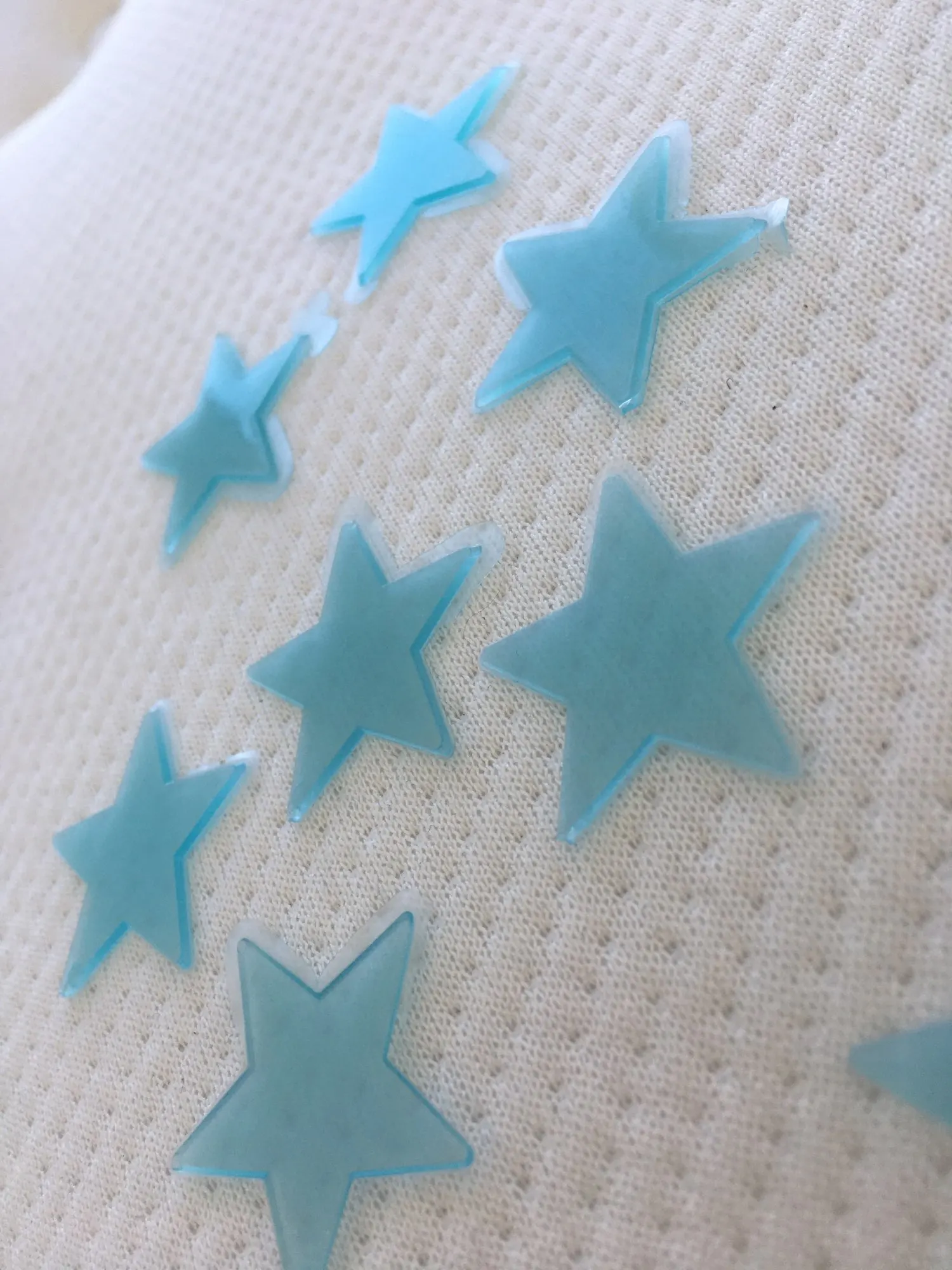 Крошечные красивые звезды, поставляются с клейкой резинкой.