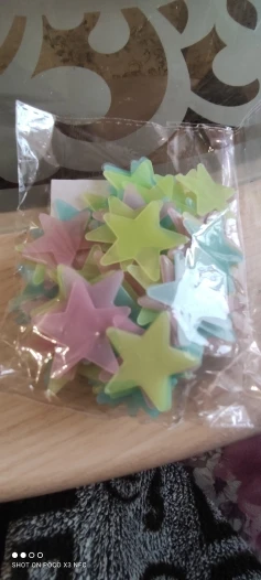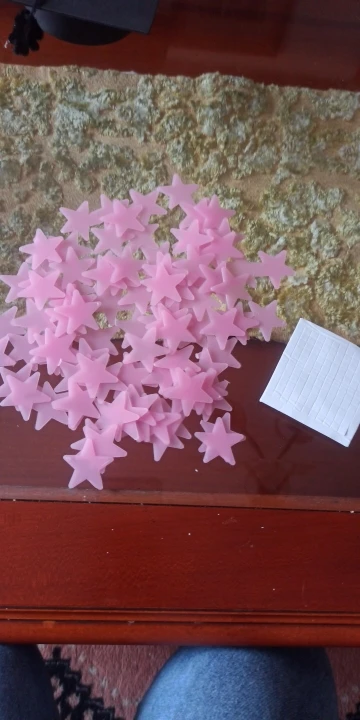 Звездочки действительно светятся в темноте, хотя не очень ярко, но ребенку понравилось. Они такие, как на картинке. Продавца рекомендую.