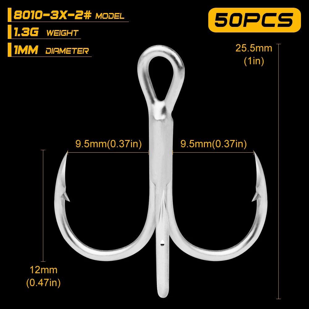 50 шт./лот рыболовный крючок для соленой воды матовые тройные Крючки для олова 2/0 #-1/0 #-1 #-2 #-4 #-6 #-8 # высокопрочные Крючки из углеродистой стали 3X