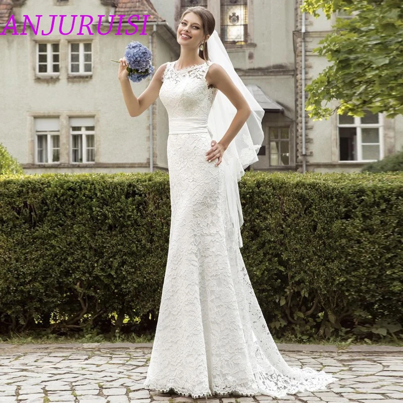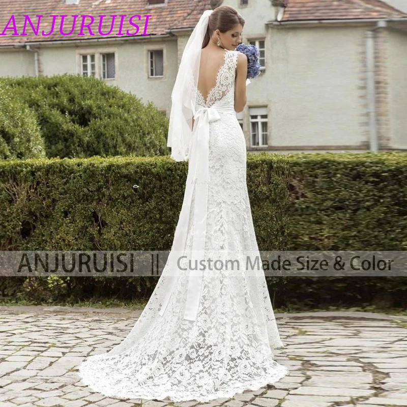 Женское свадебное платье ANJURUISI, винтажное кружевное платье-Русалка с открытой спиной, с глубоким вырезом и поясом, романтическое простое сексуальное свадебное платье со шлейфом, 2020