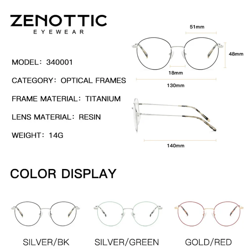 Круглые очки ZENOTTIC в титановой оправе для женщин и мужчин, ультр...