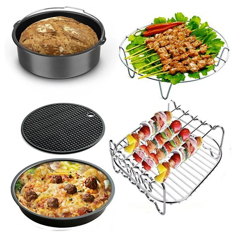 Высокое качество воздуха фритюрница аксессуары 7 дюймов для Gowise Phillips Cozyna и Secura, набор из 9, подходит для всех Airfryer 3.7QT - 4.2QT - 5.3QT - 5.8QTПредотвращение ожогов-предоставление зажима для чаши и кухонного Тонга для безопасного подъема горячих тарелок и стеллажей из воздушной фритюрницыВысокое качество-сделано из пищевых материалов безопасности, покрытие для здоровья тефлоновое антипригарное покрытие, которое легко чистить и долговечно.Простота в использовании и безопасность/высокое качество и долговечность/Приготовление пищи стало более удобным и эффективным! Сделайте здесь вкусный торт, удобство и легкость в маневрении.Сделайте пиццу, яйца, блинчики и печенье, которое вам нравится. Предоставьте вам термостойкую поверхность, чтобы разместить горячие аксессуары.Позвольте второй слой пищи, максимизируя поверхность для приготовления пищи. Pefect для овощей и мяса shish kabobs.Хлеб, который нужно запечать, нарезанный на полке, и запеченный в фритюрнице с циркуляцией горячего воздуха. Вы можете испечь 7 мини-пирожных одновременно с воздушной фритюрницей. Отлично подходит для жаркой тарелки или миски из воздушной фритюрницы.Цвет: серебристый + черныйМатериал: силикон + нержавеющая стальПосылка:1 xCake баррель1 x сковорода для пиццы1 х силиконовый коврик1 х металлический держатель1 x шашлык (с 4 шашлыками)1 х раковина для хлеба1x пищевая щетка1xanti-обжигающий зажим1 x зажим для едыТолько вышеуказанная посылка, другие товары не включены.Примечание: светильник и различные дисплеи могут привести к тому, что цвет товара на картинке немного отличается от реального. Допускается погрешность в измерениях +/- 1-3 см. Не упустите свой шанс.