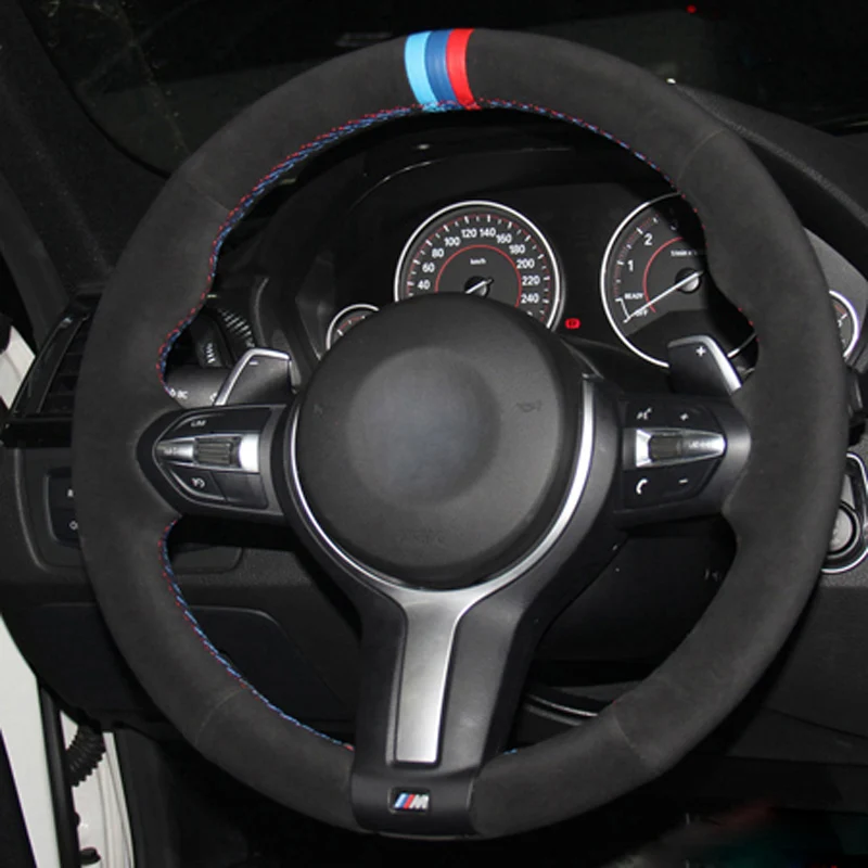 Чехол ручного шитья для руля автомобиля, замша из коровьей кожи для...