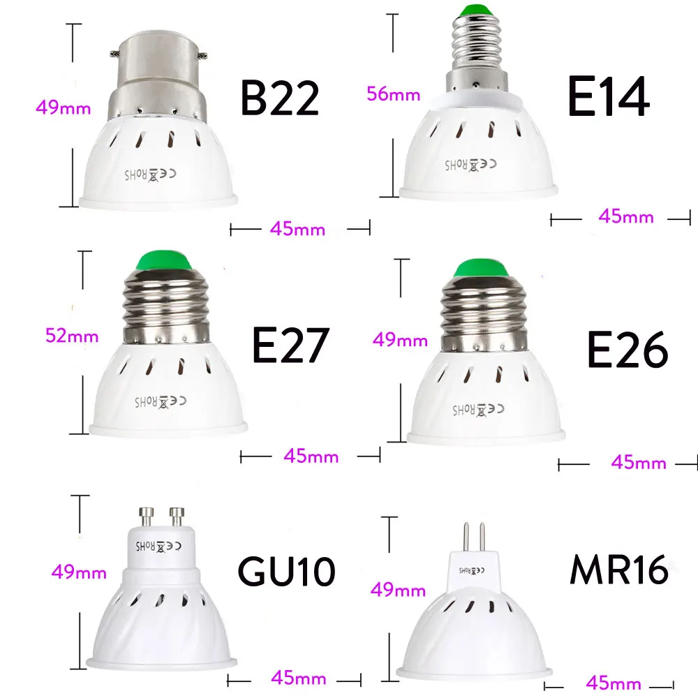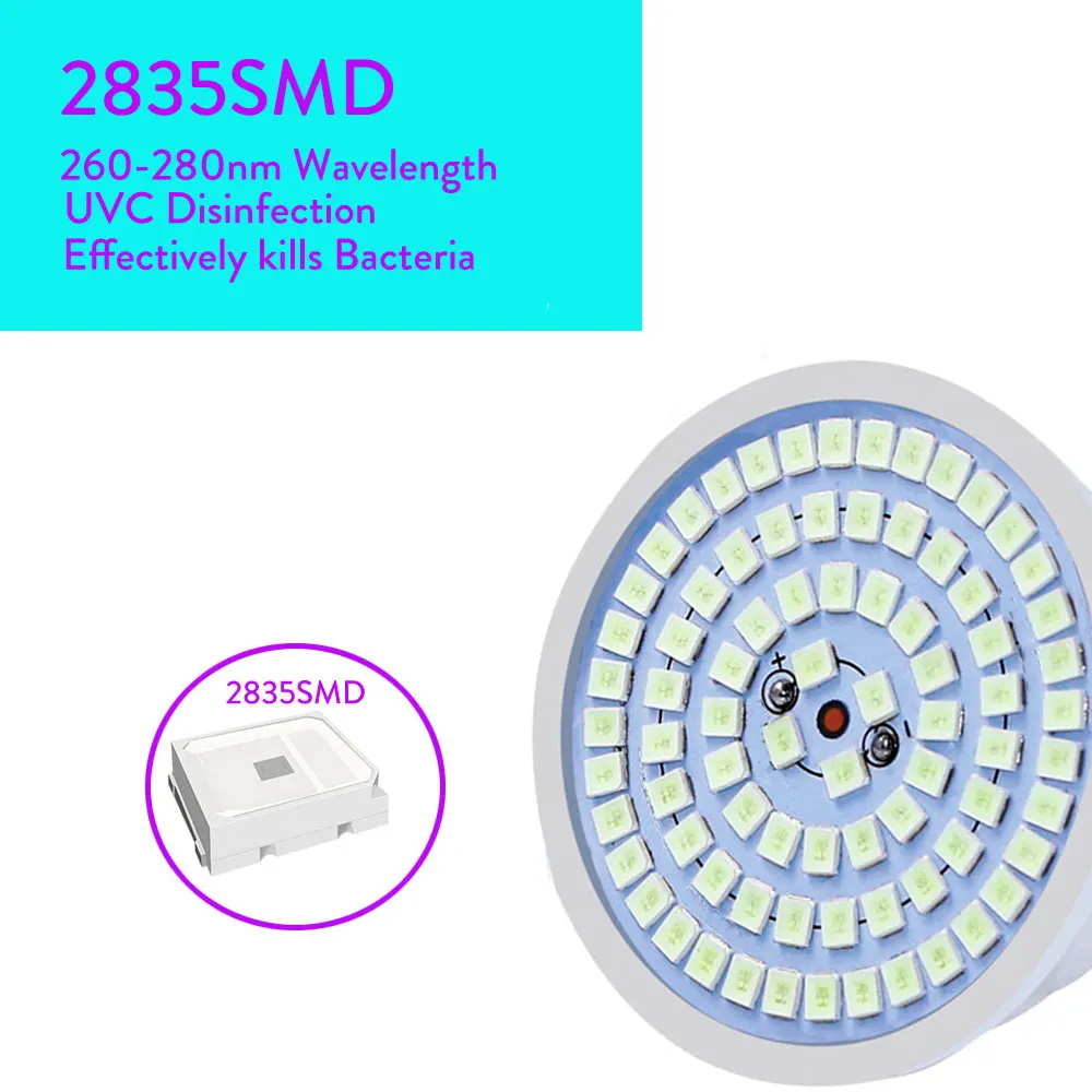 Название продукта: светодиодный бактерицидный УФ-светильник Основной тип: E27 / E14 / B22 /E26/ GU10 / MR16 Количество СВЕТОДИОДНЫЙ: 36 светодиодный s/ 48 Светодиодный s / 56 светодиодный s/ 60 Светодиодный s / 80 светодиодный s Напряжение: 110 В/220 В переменного тока Светодиодный Тип: SMD 2835 Размер: E27: Ø45*52 мм E14: Ø45*56 мм GU10: Ø45*49 мм MR16: Ø45*49 мм B22: Ø45*49 мм E26: Ø45*49 мм Срок службы: более 50000 часов Гарантия: 2 года