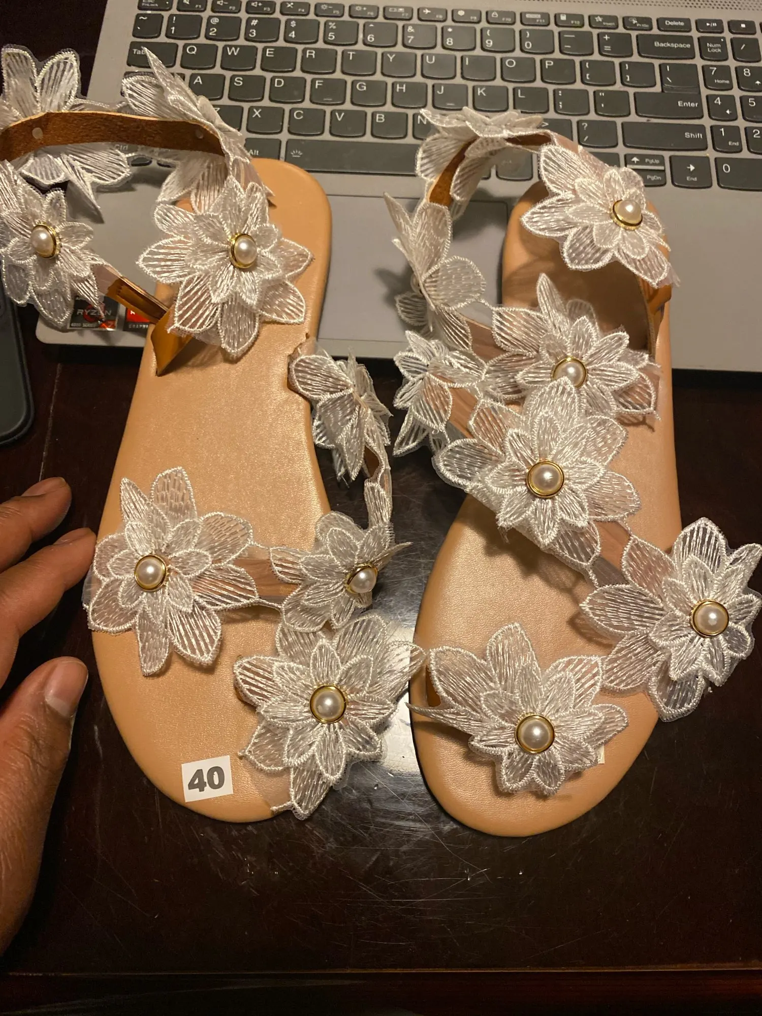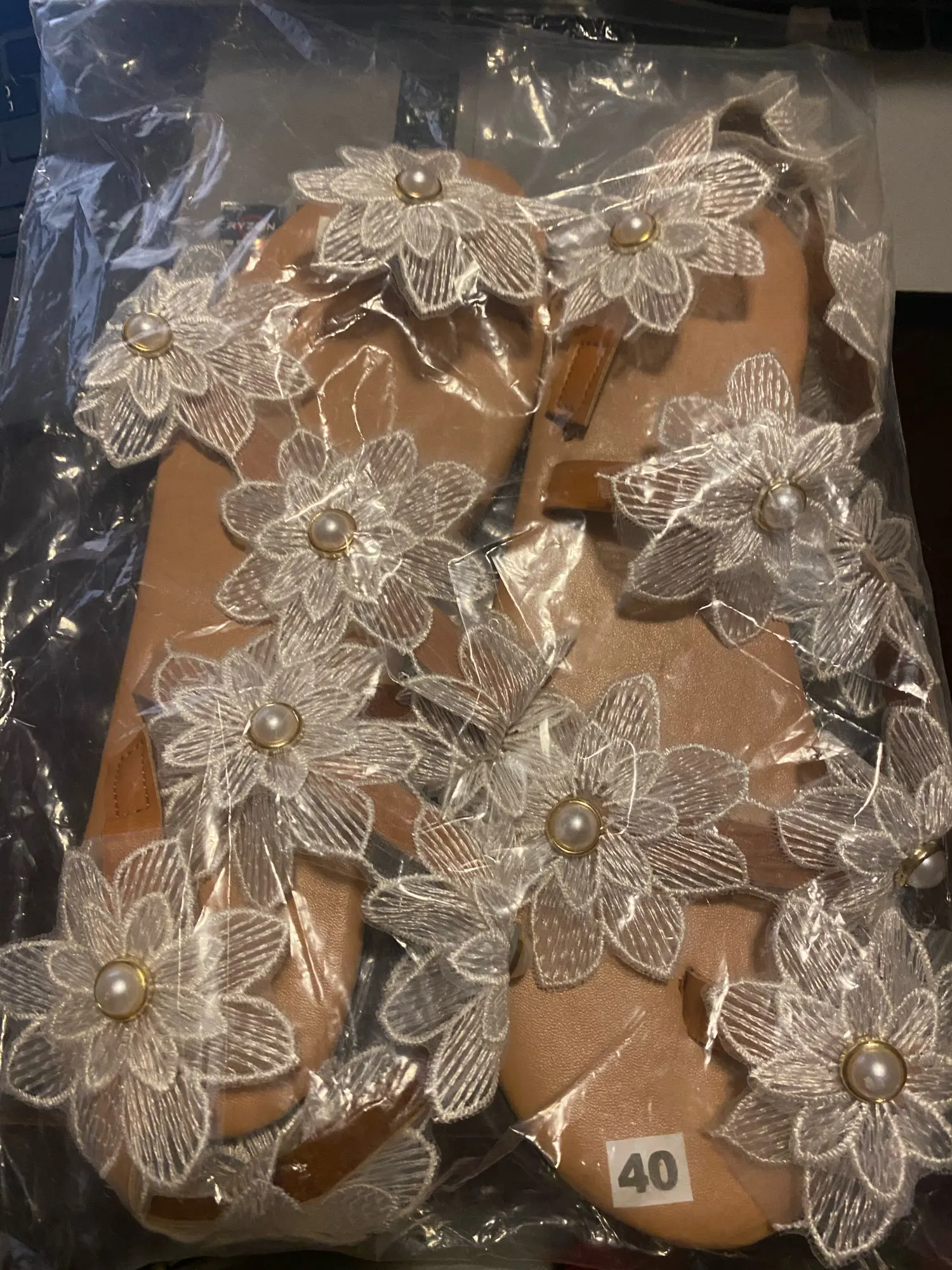 Выглядят неплохо. На свой 38 брала 39 и село тока-тока. Меньше размер брать нельзя. Цветочки вырезаны не аккуратно, придется самой сидеть и везде все обрезать. Не знаю на сколько они крепко сделаны, лето покажет, взяла аод свадебное платье на летнюю фотосессию на море. Но на эти деньги тапочки конечно не тянут. Им цена рублей 500