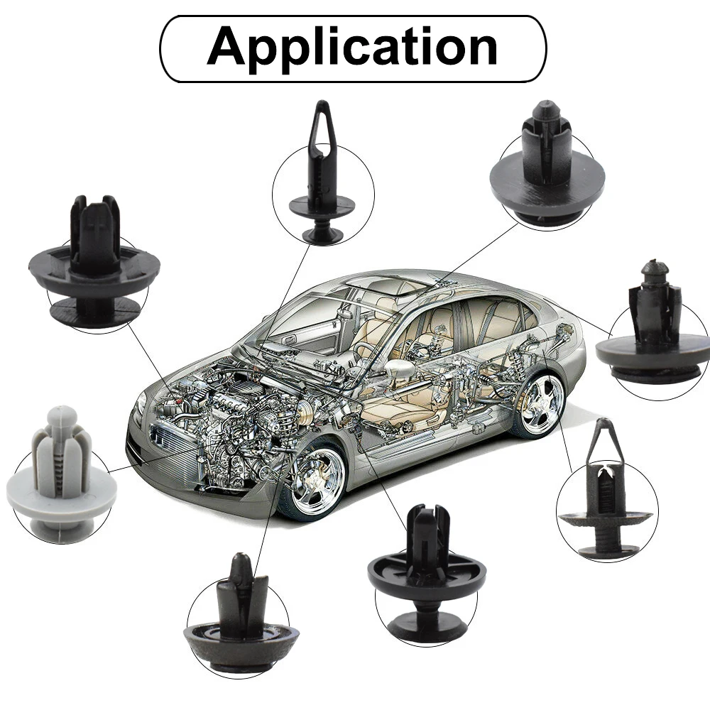 Особенности:Эти заклепки сделаны из пластикового материала, подходит для использования в автомобиле.Автомобиль хороший аксессуар, обычно используется для установки боковых юбок, бамперов и другой отделки.Их можно использовать на автобусах, поездах, самолетах, грузовиках, автомобилях.Нажимной тип, изготовлены из пластикового материала, подходит для отверстия диаметром 6,8 мм-9 мм.