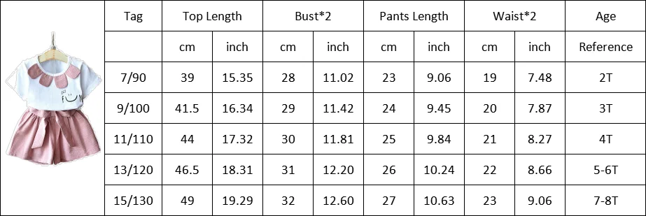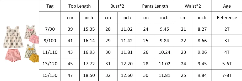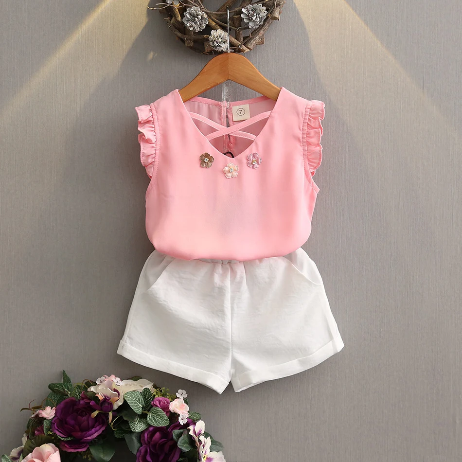 Летние комплекты одежды из 2 предметов для маленьких девочек