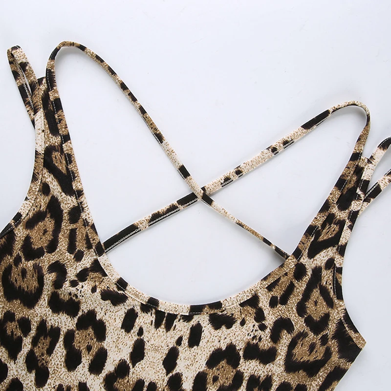 Женский леопардовый боди с открытой спиной, обтягивающий комбинезон...