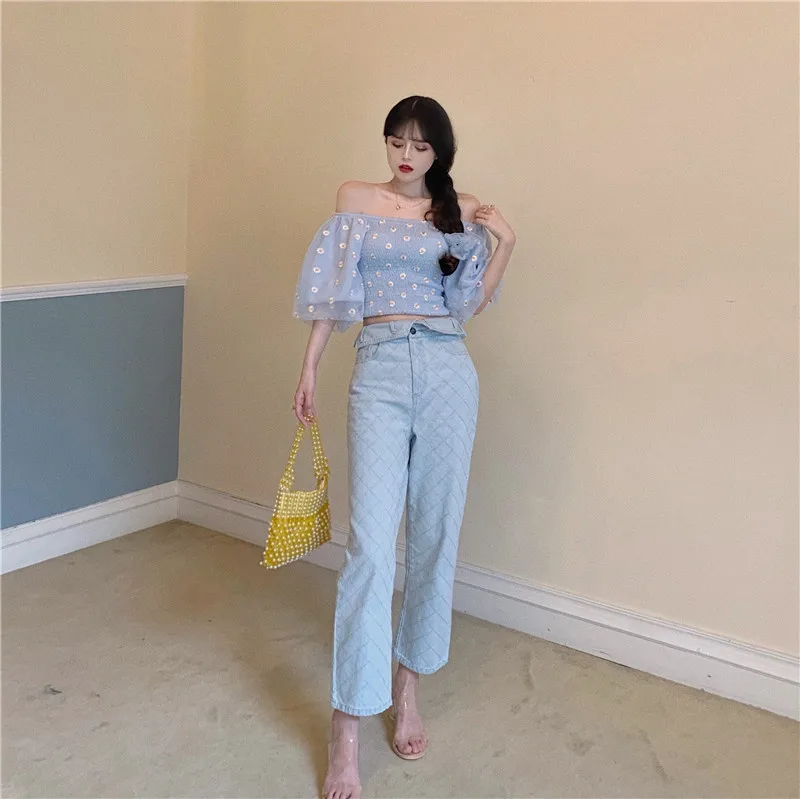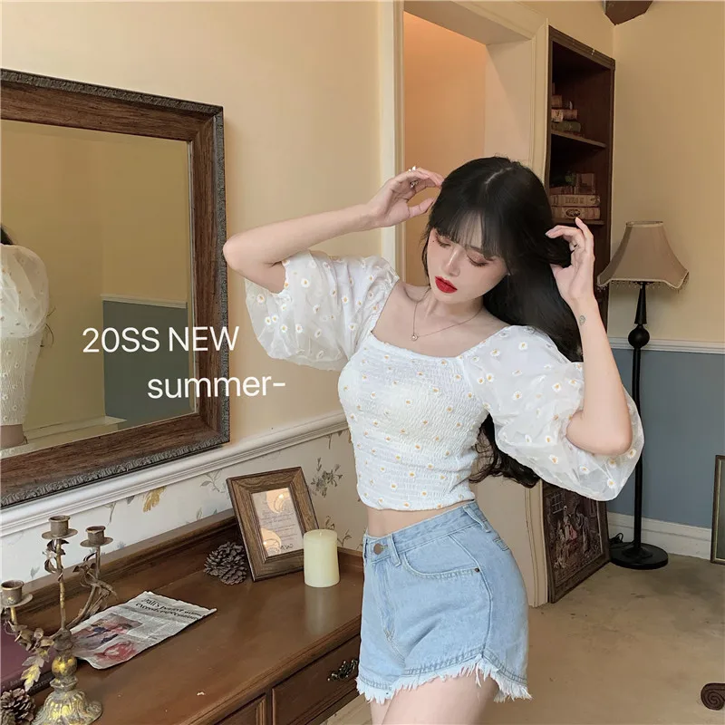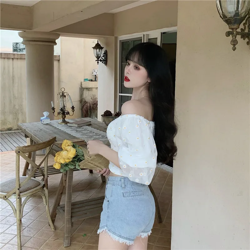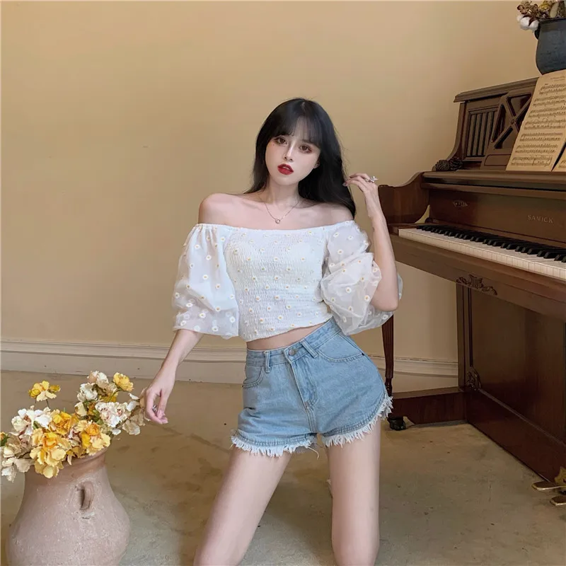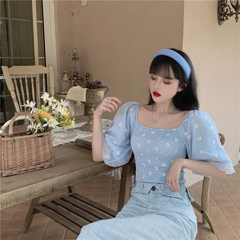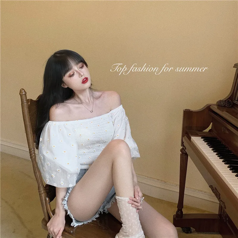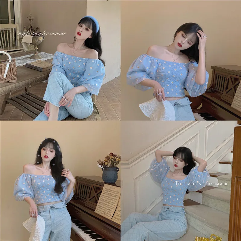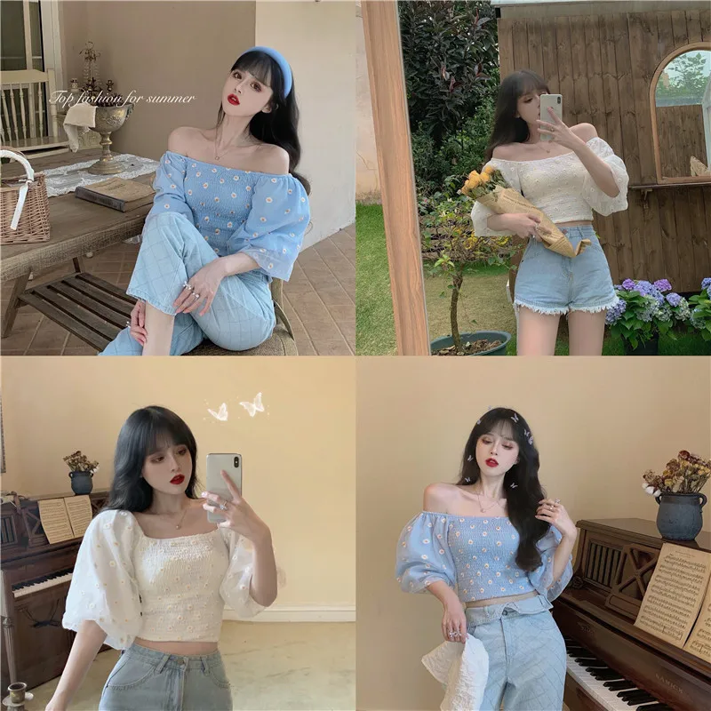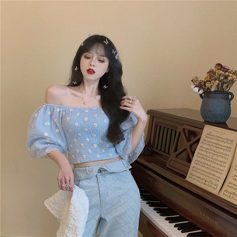 Блузка женская сетчатая с цветочным принтом, с вырезом лодочкой и рукавами-фонариками, DX129