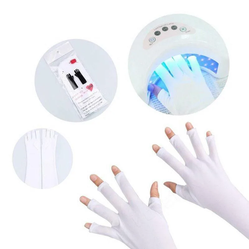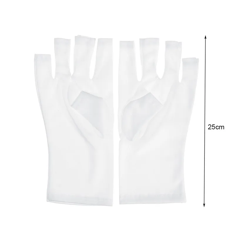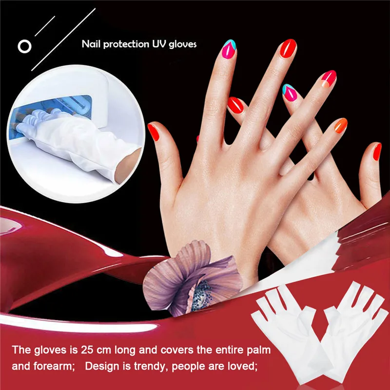Особенности: -100% новое качество -Простота в использовании. -Фильтры до 97% УФ. -Высокая прочность и легко моется. -Изготовлено из мягкой светильник вес ткани, один размер подходит для большинства людей. -Перчатки без пальцев с защитой от УФ-лучей могут защитить вашу кожу при нанесении УФ-геля. Уменьшить вред до минимального. Покажите свою красоту и Защитите себя.