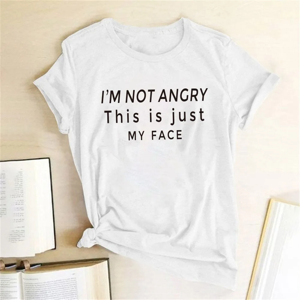 Женская футболка с принтом «I'm Not Angry This Si Just My Face», забавная летняя футболка с круглым вырезом для женщин 2020, топы с эстетикой, Ropa De Mujer