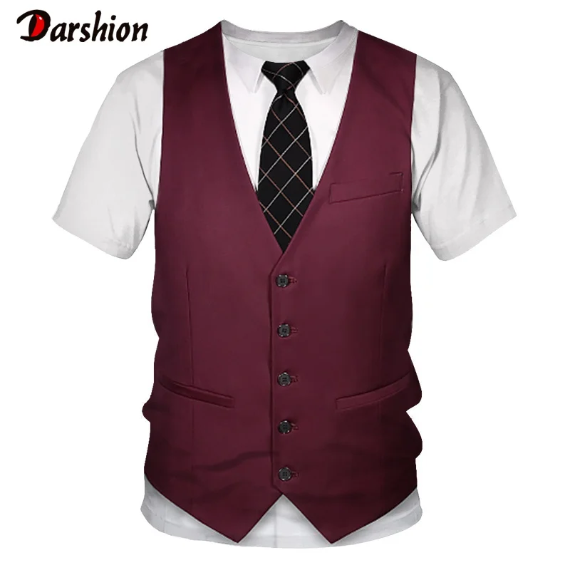 3D футболка, смешные поддельные костюмы Галстук-бабочка для смокинга 3D печатные футболки мужская летняя мода с коротким рукавом Уличная одежда поддельный костюм жилет Футболка