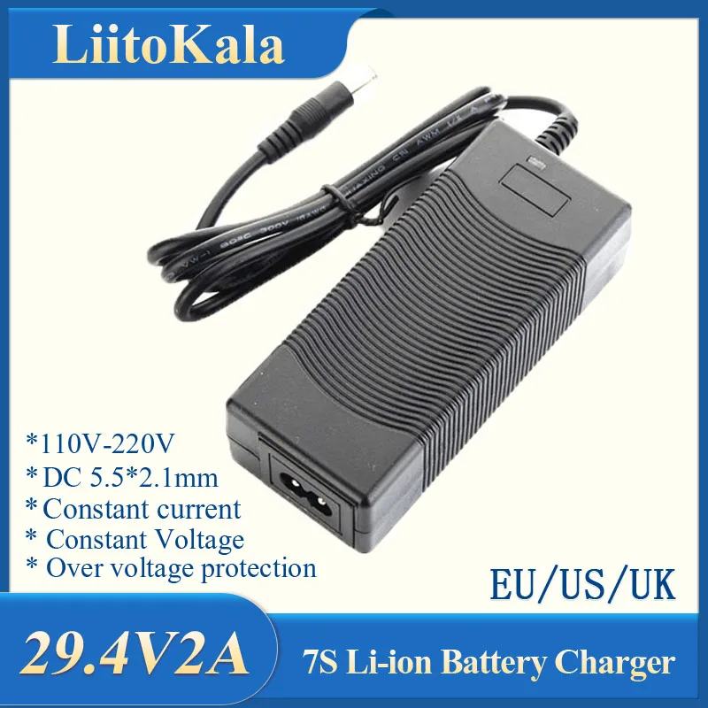 Зарядное устройство LiitoKala для электрического велосипеда, 29,4 в, 2 А, 7S